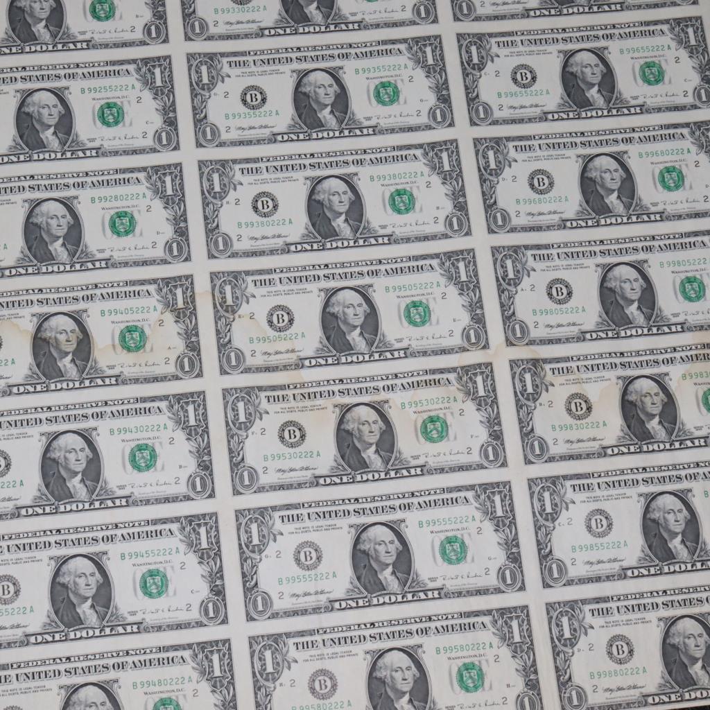 1995 Uncut Sheet of 32 US One Dollar Federal Reserve Note
