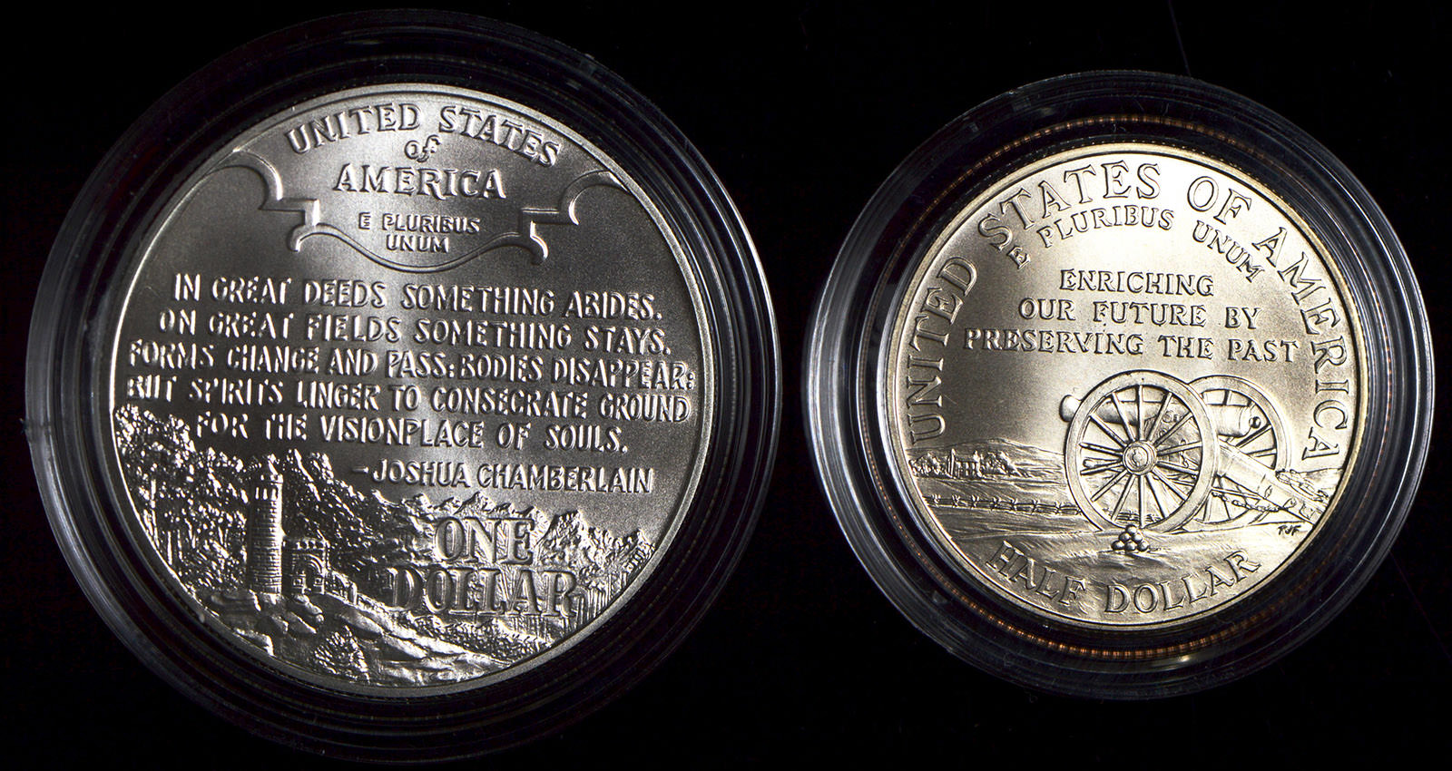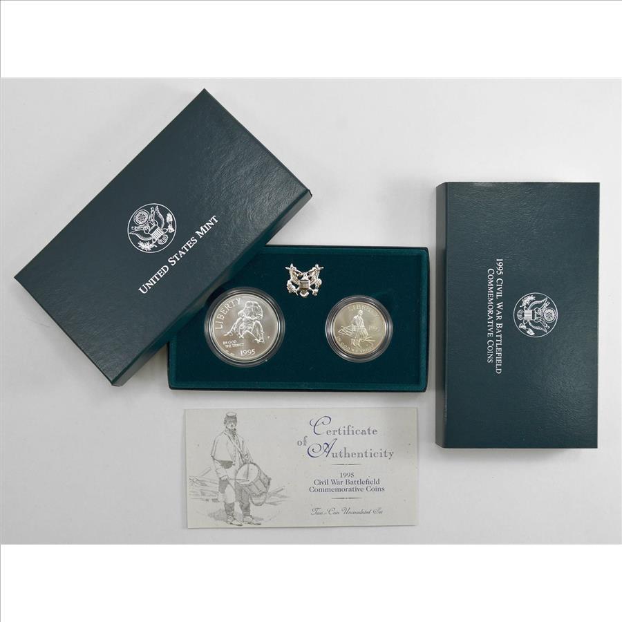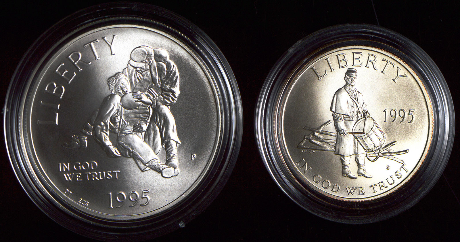 1995-P $1 Civil War Uncirculated US Commemorative Silver Dollar 2 Coin Set