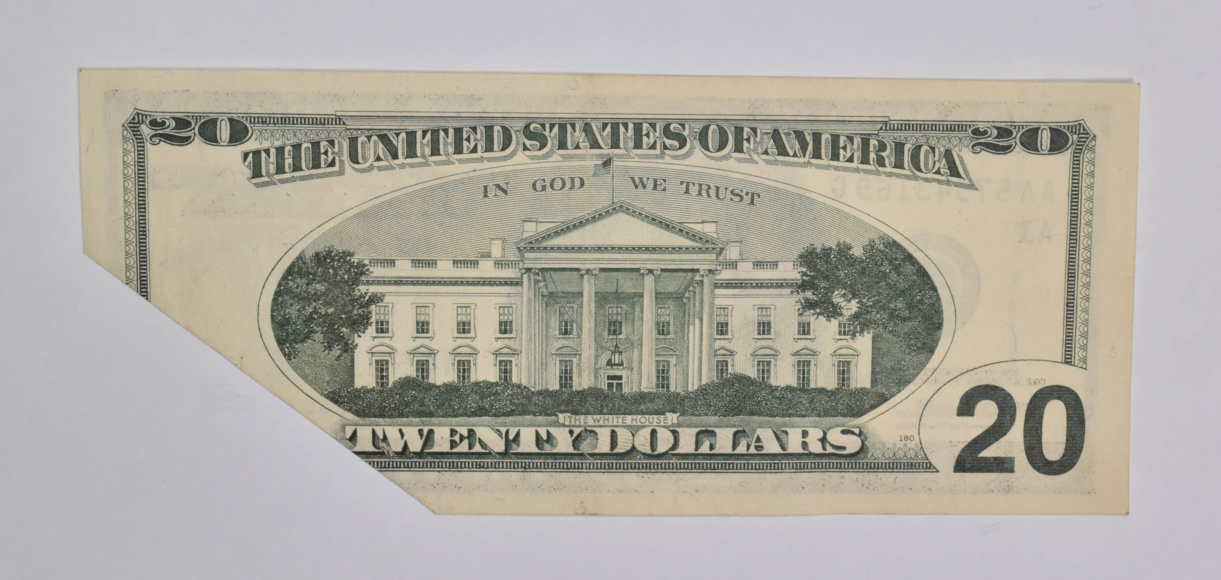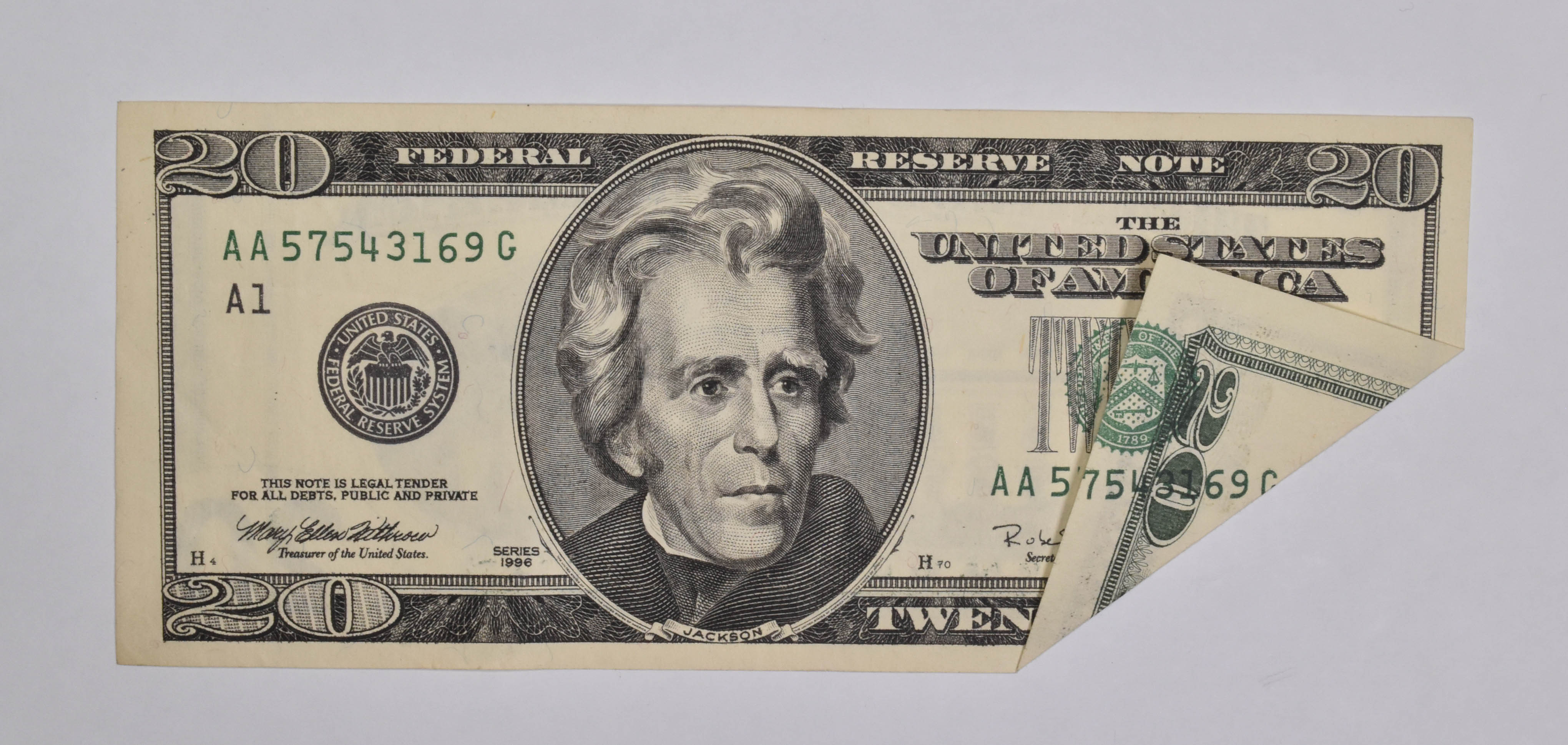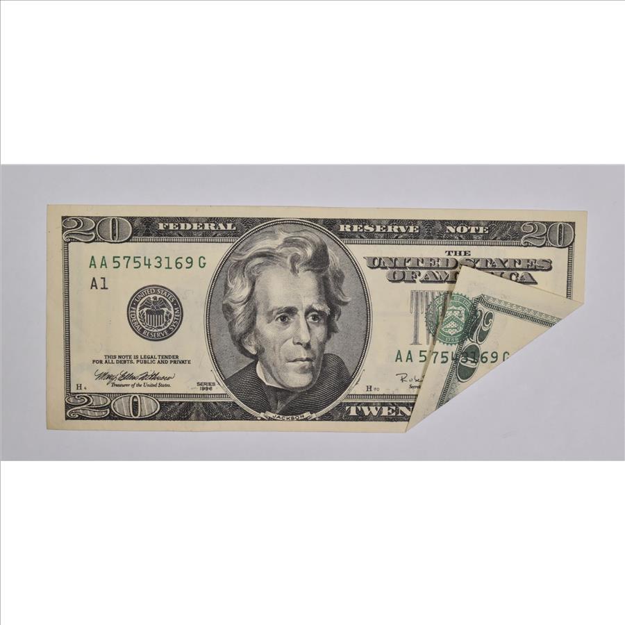 1996 $20 United States Federal Reserve Note Green Seal Folded Print Error