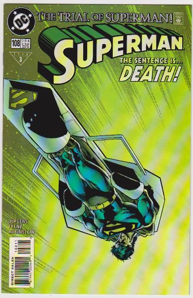 This is an original 1996 DC Comics SUPERMAN #108 issue.  It has minor wear but is in approximately Excellent overall condition.  This is an original 29 year old issue of this popular comic series.
