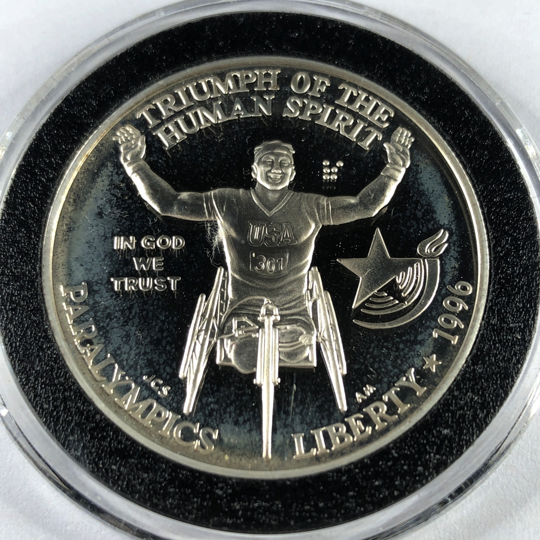 1996-P Paralympics Wheelchair Races Commemorative Proof Silver Dollar*Deep Cameo*In Protective Capsule