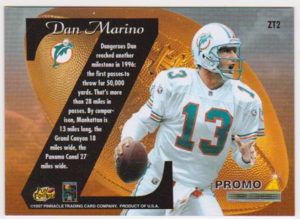 1997 Zenith Z-Team Dan Marino #ZT2 Promo Card