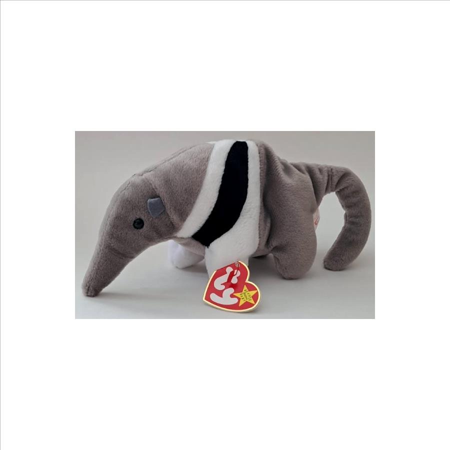 This is a 1998 Ants The Anteater Ty Beanie Baby.  It has the original tags still attached. The swing tag has a crease, but this one is otherwise in Excellent overall condition.
