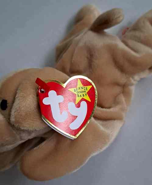 This is a 1998 Fetch The Dog Ty Beanie Baby.  It is new with the original tags still attached.