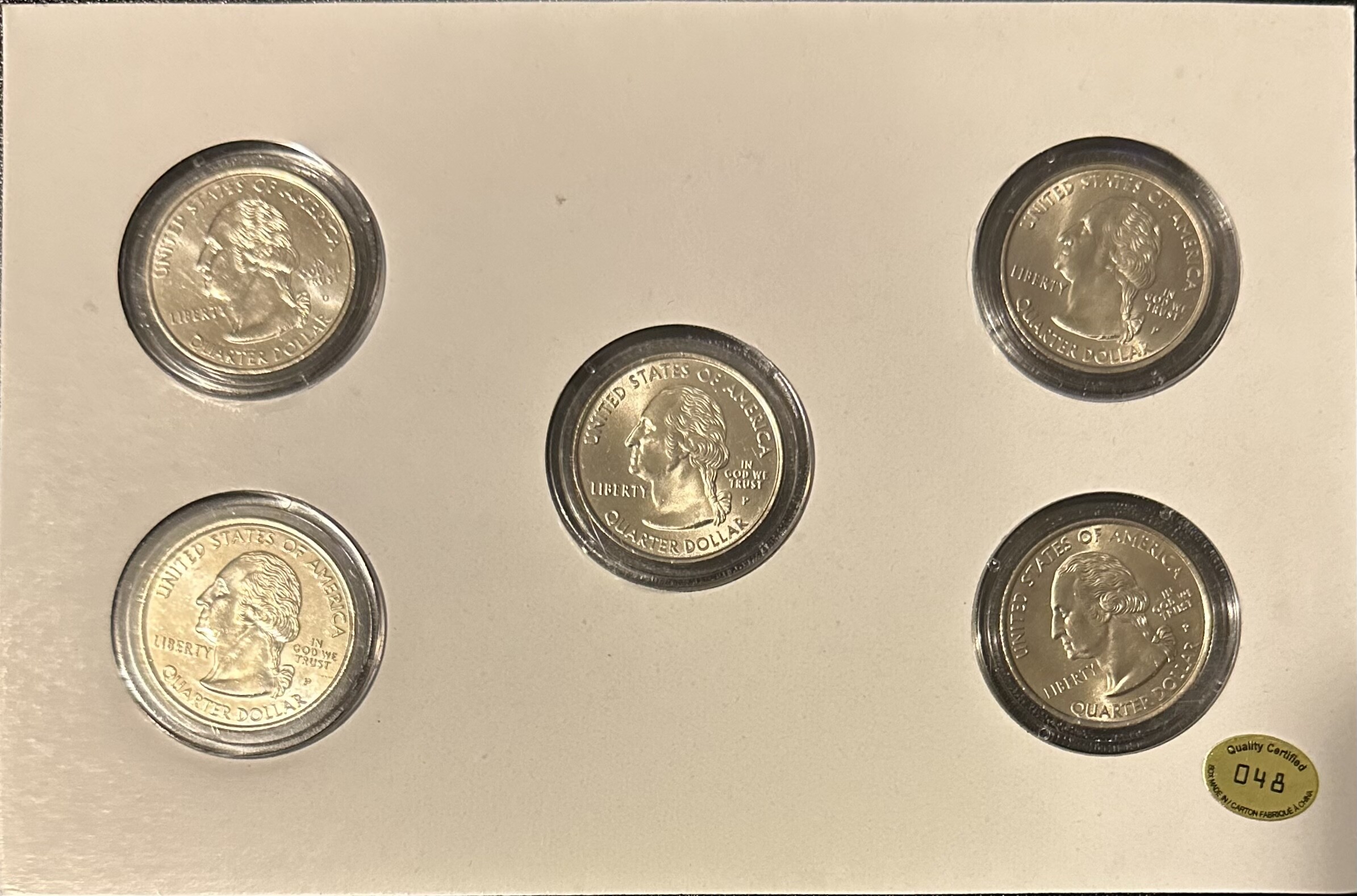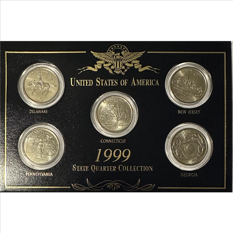 >1999 U.S. State Quarter Collection - (D) PA and (P) DE, CT, NJ & GA - 5 State Quarters in Custom Display Card