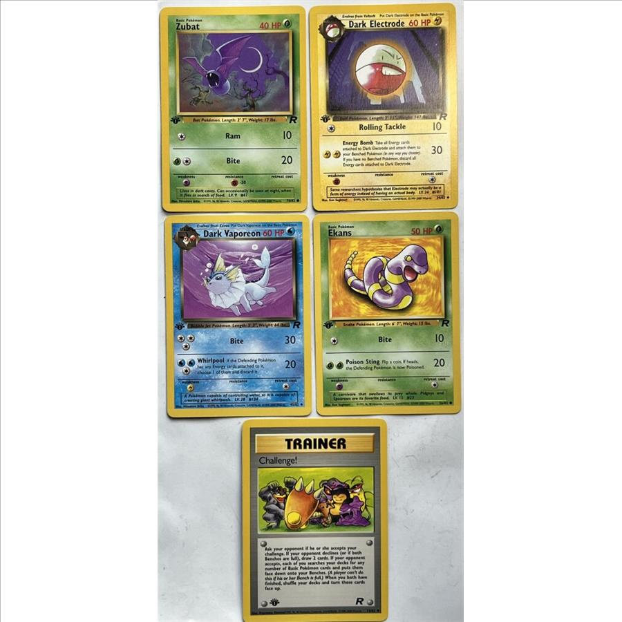 1999-2000 Pokémon 1st Edition Cards - Zubat, Dark Electrode & Dark Vaporeon, Ekans & Trainer - 5 Cards