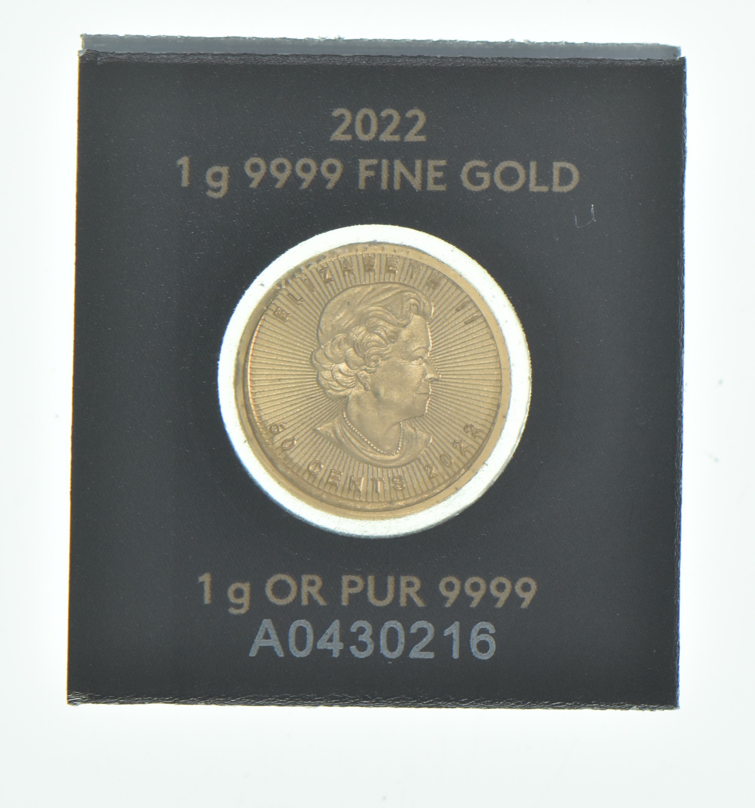 1g Canadian Gold Maples 50 cents Coin 9999 Fine Maple gram In Assay