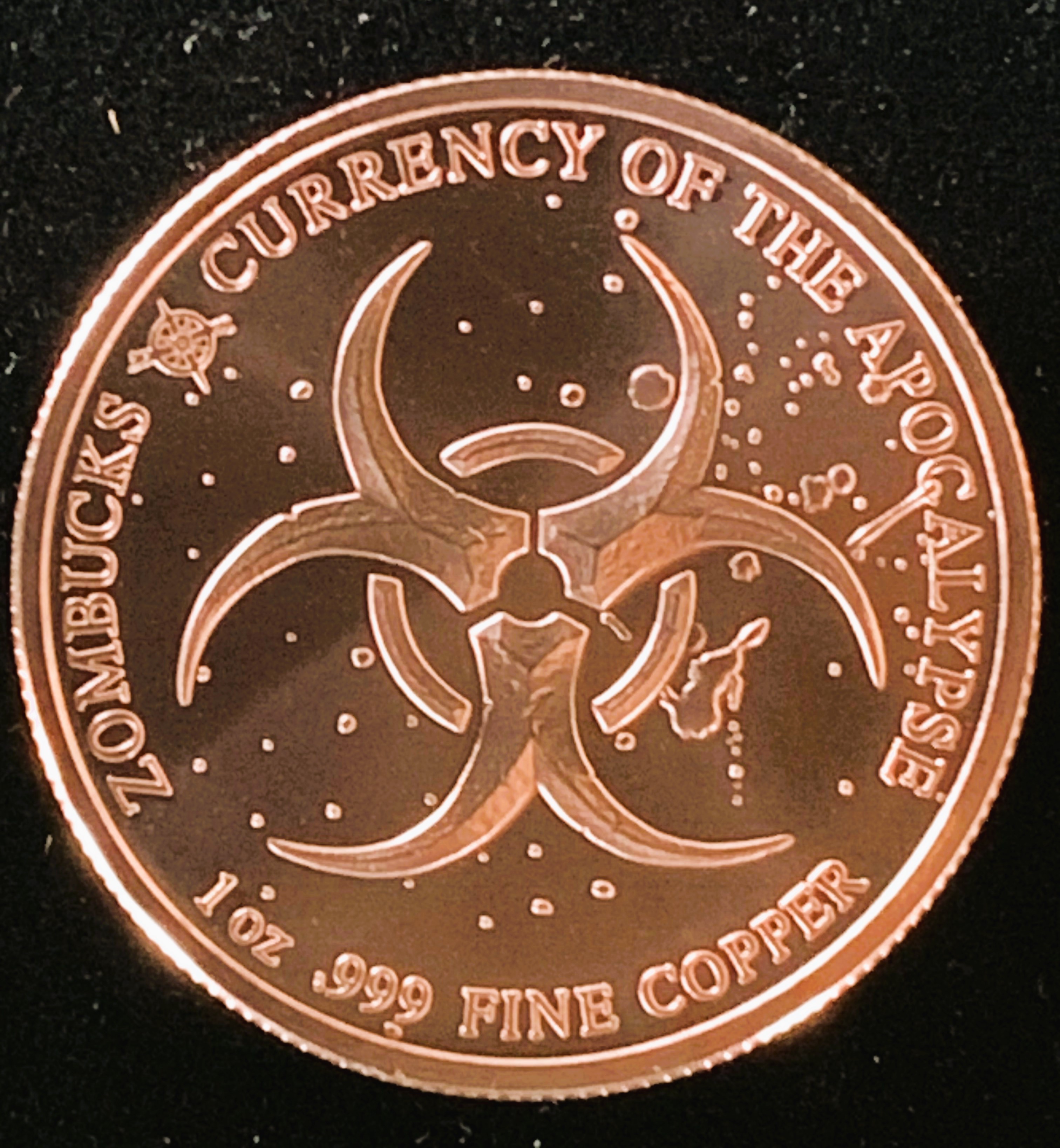 1oz .999 FINE COPPER ROUND COIN "CURRENCY OF THE APOCALYPSE", HIGH LUSTER BRILLIANT UNCIRCULATED