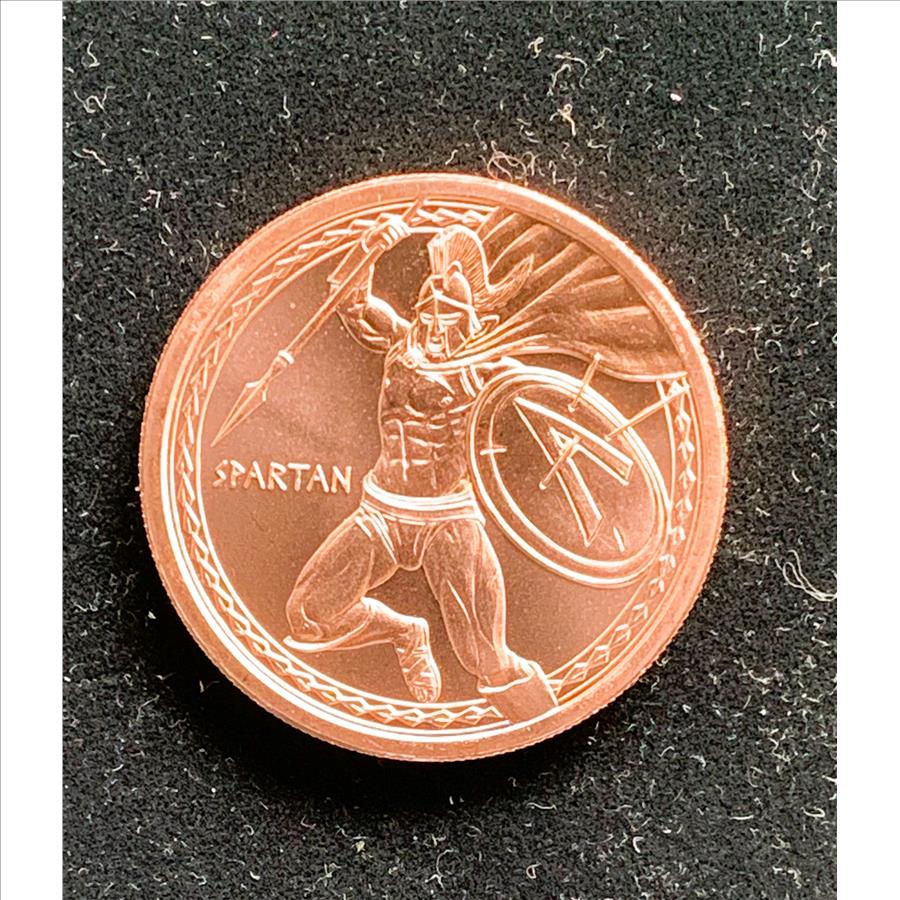 1oz .999 FINE COPPER ROUND "SPARTAN WARRIORS" COIN, BRIGHT SHINY LUSTER UNCIRCULATED