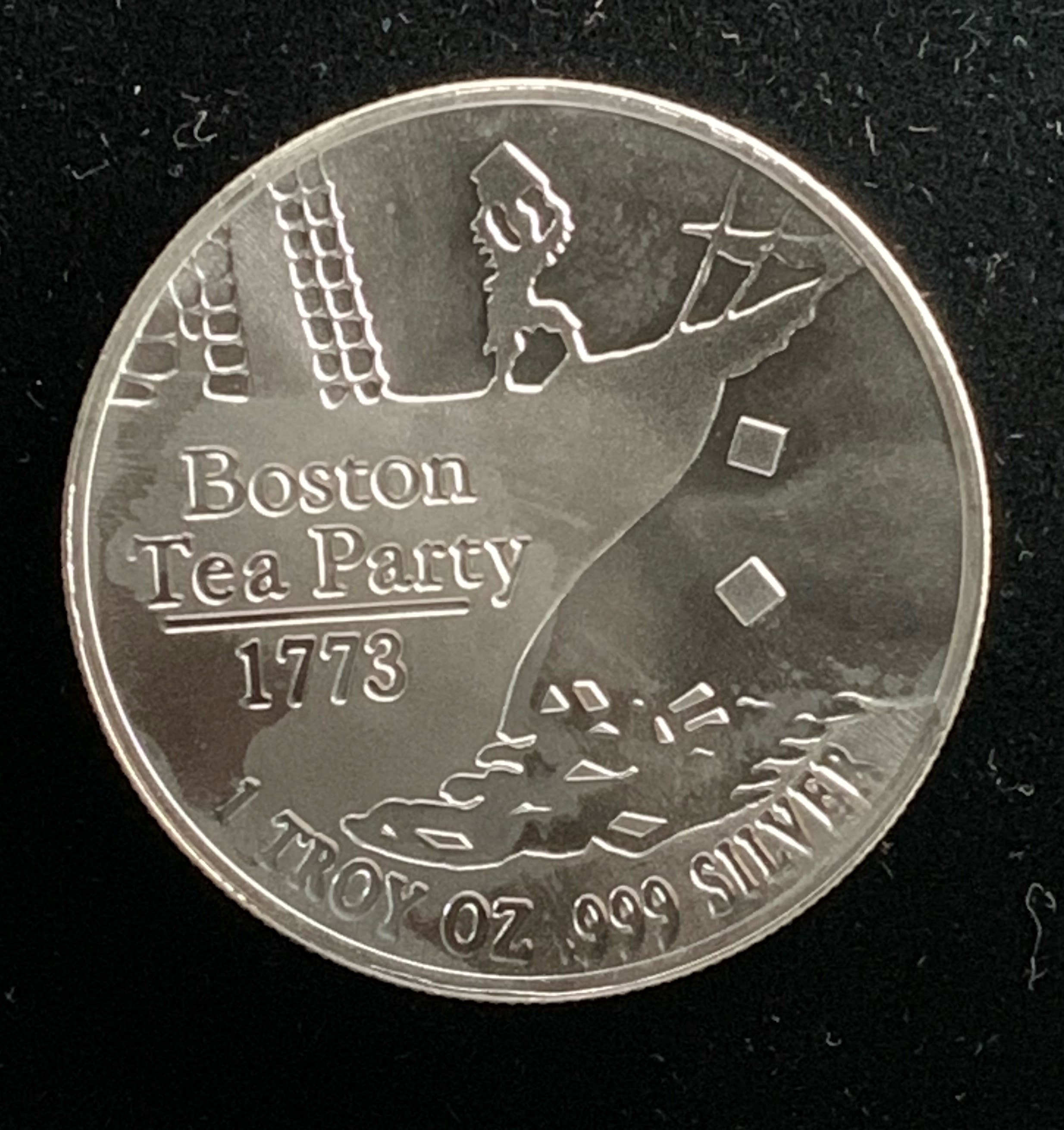 1oz ROUND COIN .999 FINE SILVER, 1773 BOSTON TEA PARTY, "DON'T TREAD ON ME" PROOF-LIKE UNCIRCULATED