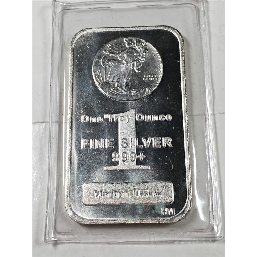 1oz Silver .999 Fine Bar w/ Silver Eagle Design