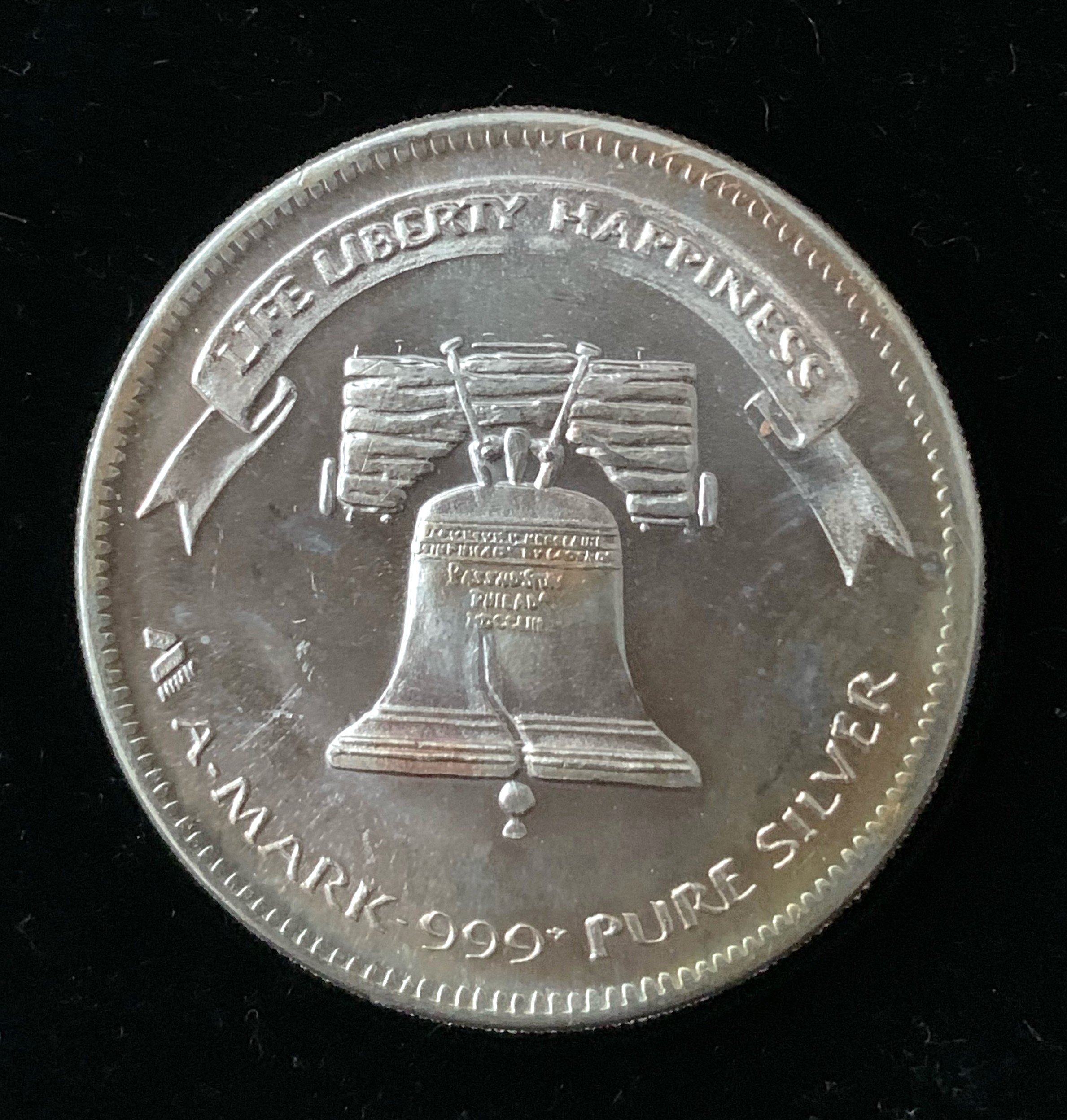 1oz SILVER ROUND LIFE LIBERTY HAPPINESS LIBERTY .999 PURE SILVER