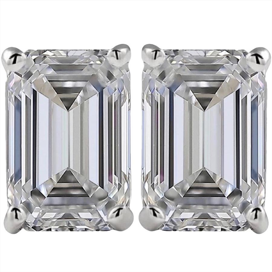 2 Carat Lab Grown Diamond Emerald Cut Stud Earrings Solid 14k White Gold IGI Certified