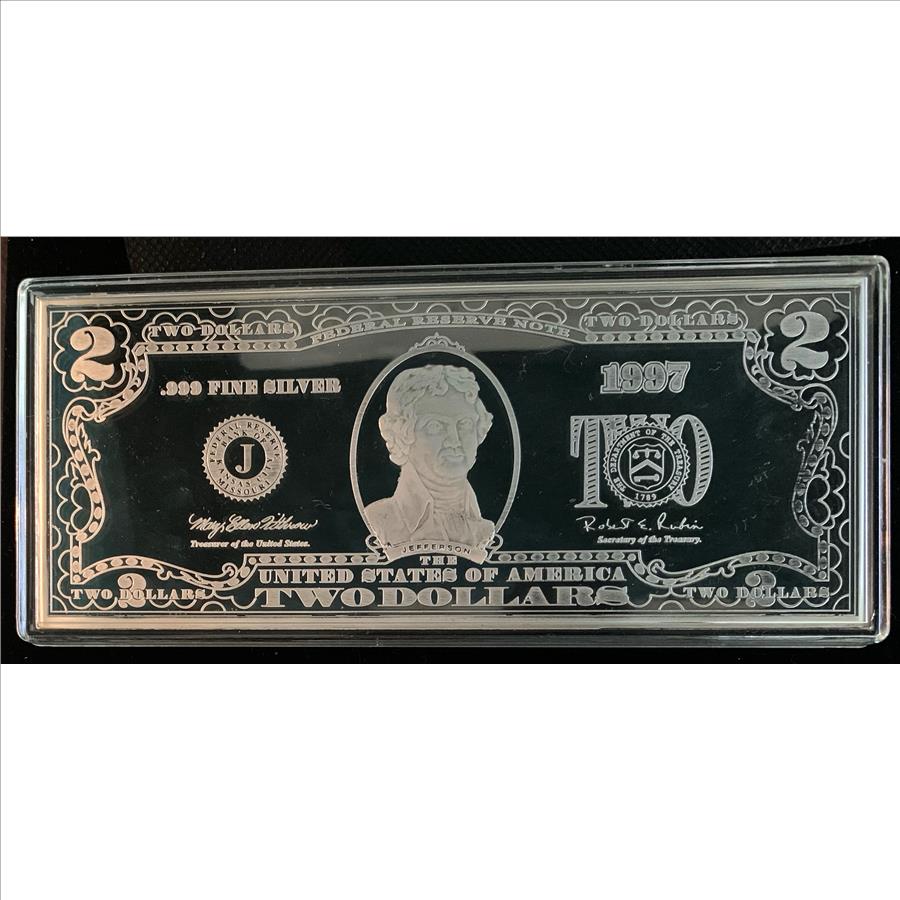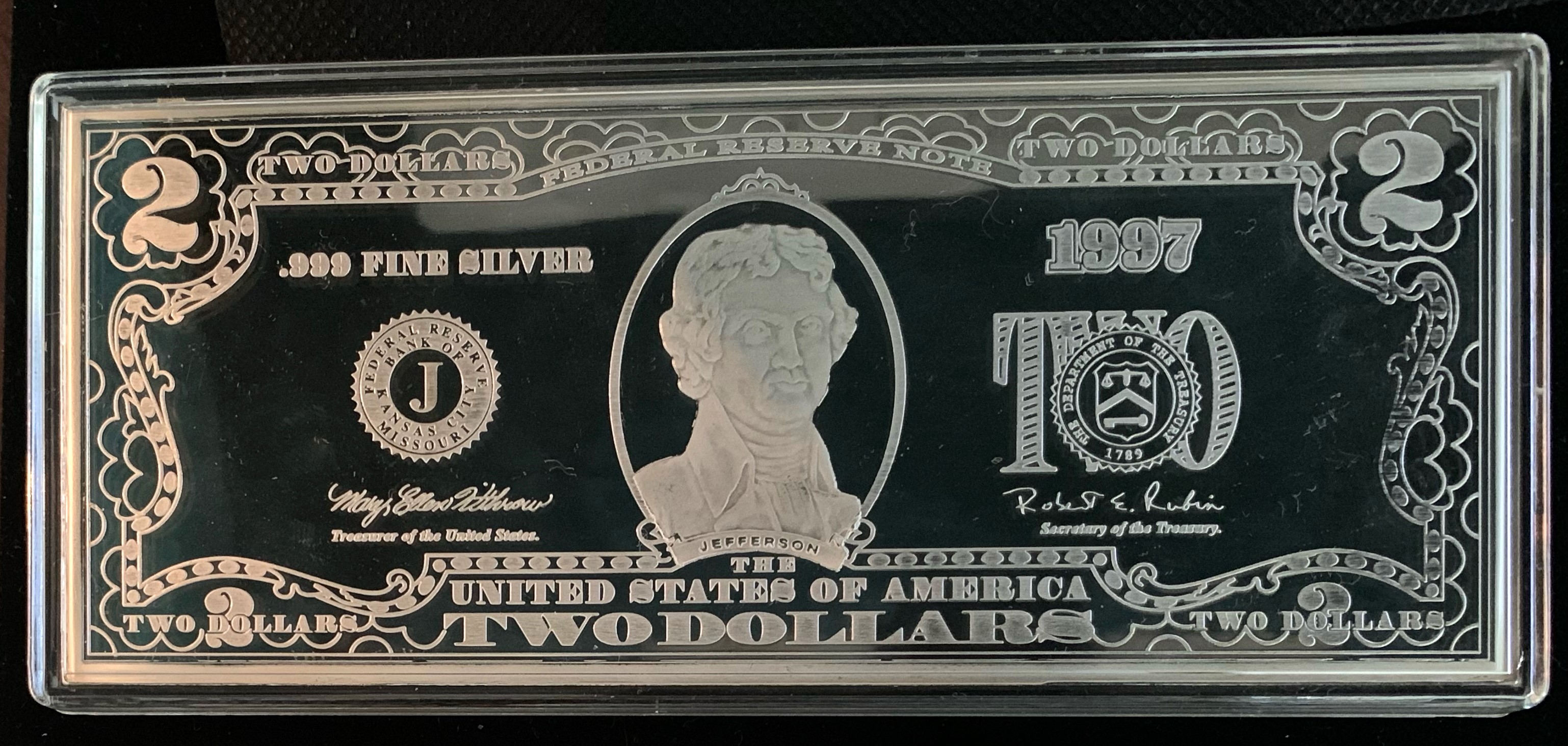 $2 DOLLAR BILL 4 TROY oz .999 FINE SILVER UNCIRCULATED PROOF IN ORIG PROTECTIVE CASE