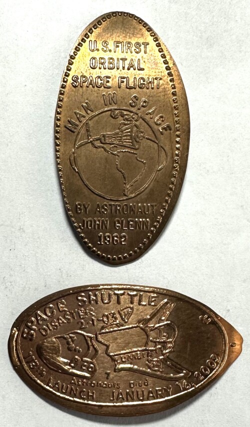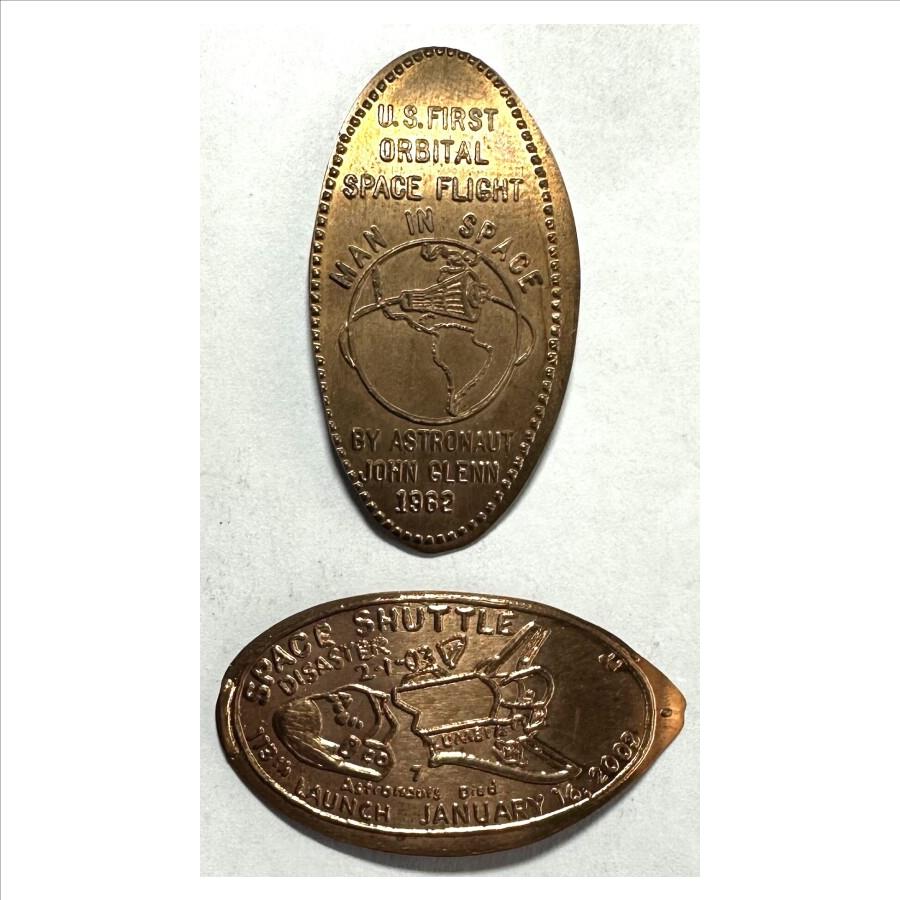 2 Elongated Cents - 1962 1st Orbital Space Flight on 1962-D Lincoln Cent and 2003 Space Shuttle Disaster