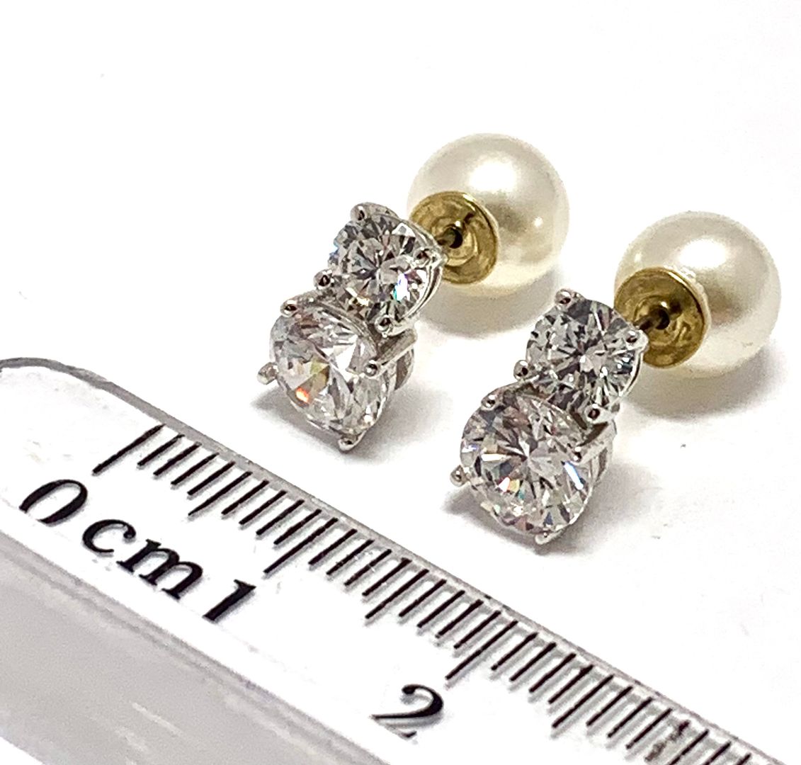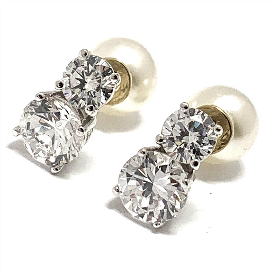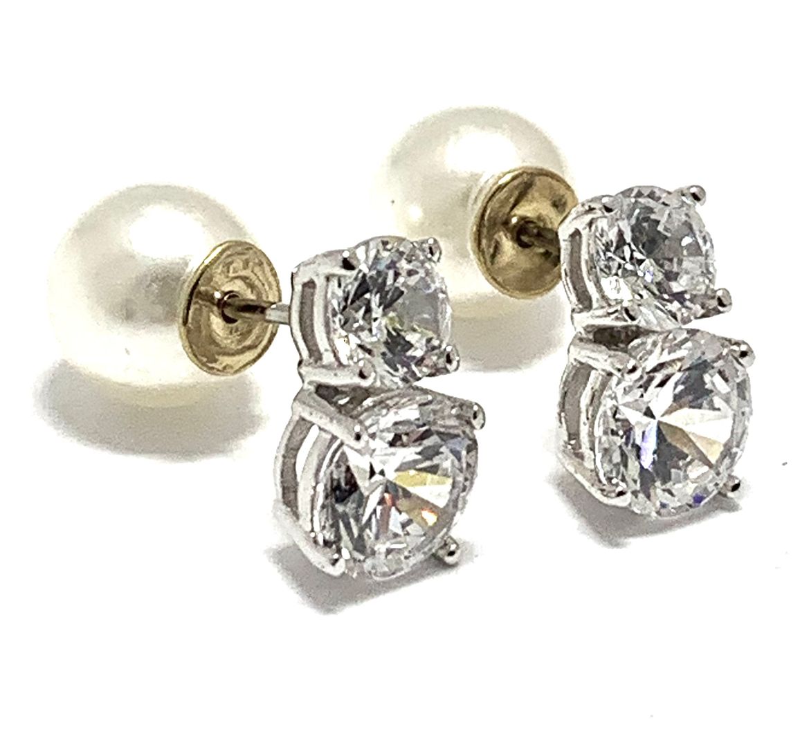 2 IN 1 Reversable Design .925 Sterling Silver 2.00ctw Diamonique Diamond & 8mm White Pearl Stud Earrings