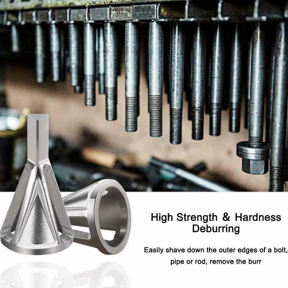 QUICKLY GRIP BOLTS: Deburring external chamfer tool can quickly grind the tip of compressed or rusty bolt to tapered edge so that the nut can be quickly tightened in place without replacing expensive and hard-to-find fasteners, saving a lot of money, especially when handling fixed bolts that cannot be disassembled.