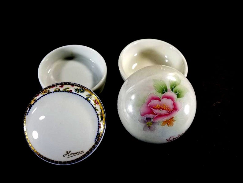 2 Vintage Porcelain Trinket Boxes With Lids