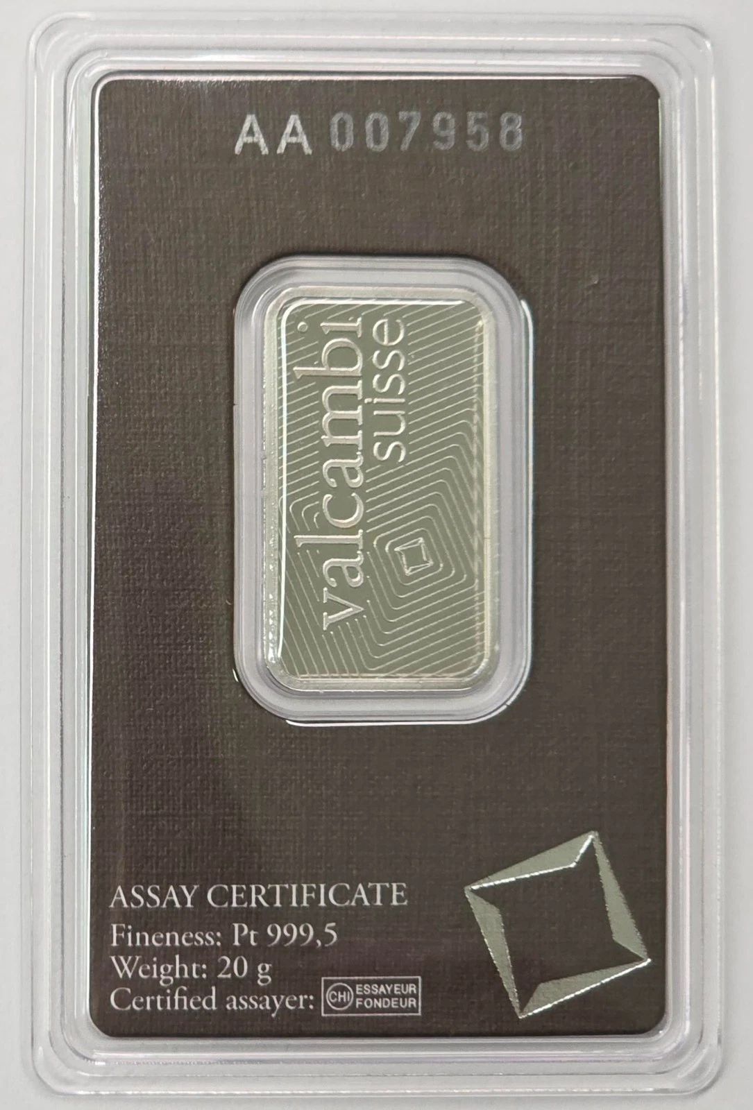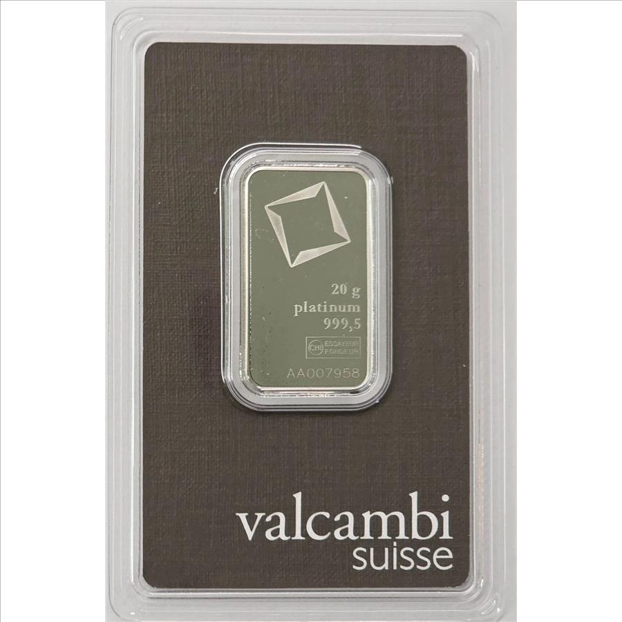 20 gram Platinum Bar - Valcambi Suisse - 999.5 Fine Assay