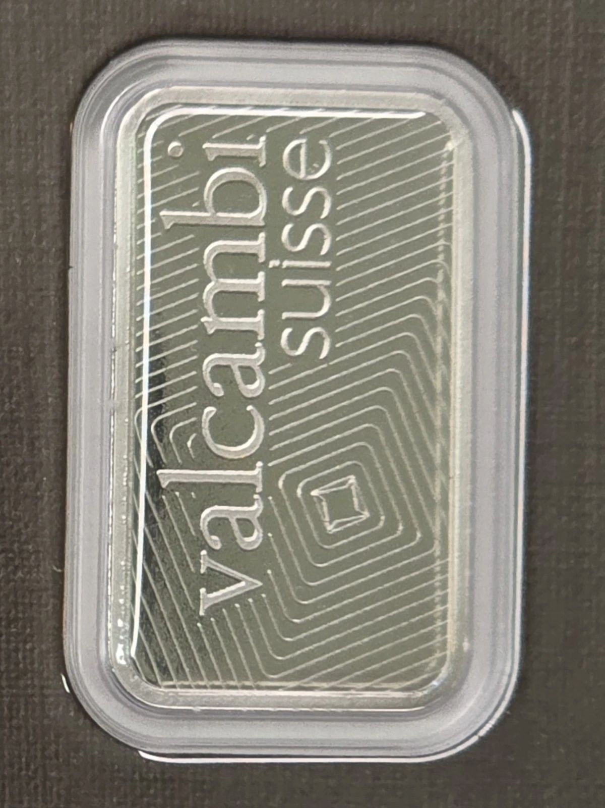 • Reverse: Reads "Valcambi Suisse" stamped in simple perfection.