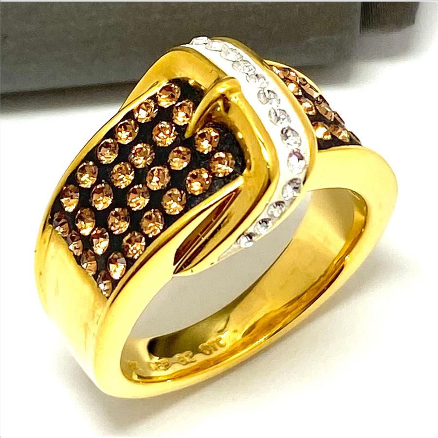 2.00 ctw Cognac & White Italian Natural Natural Crystal Buckle Ring
