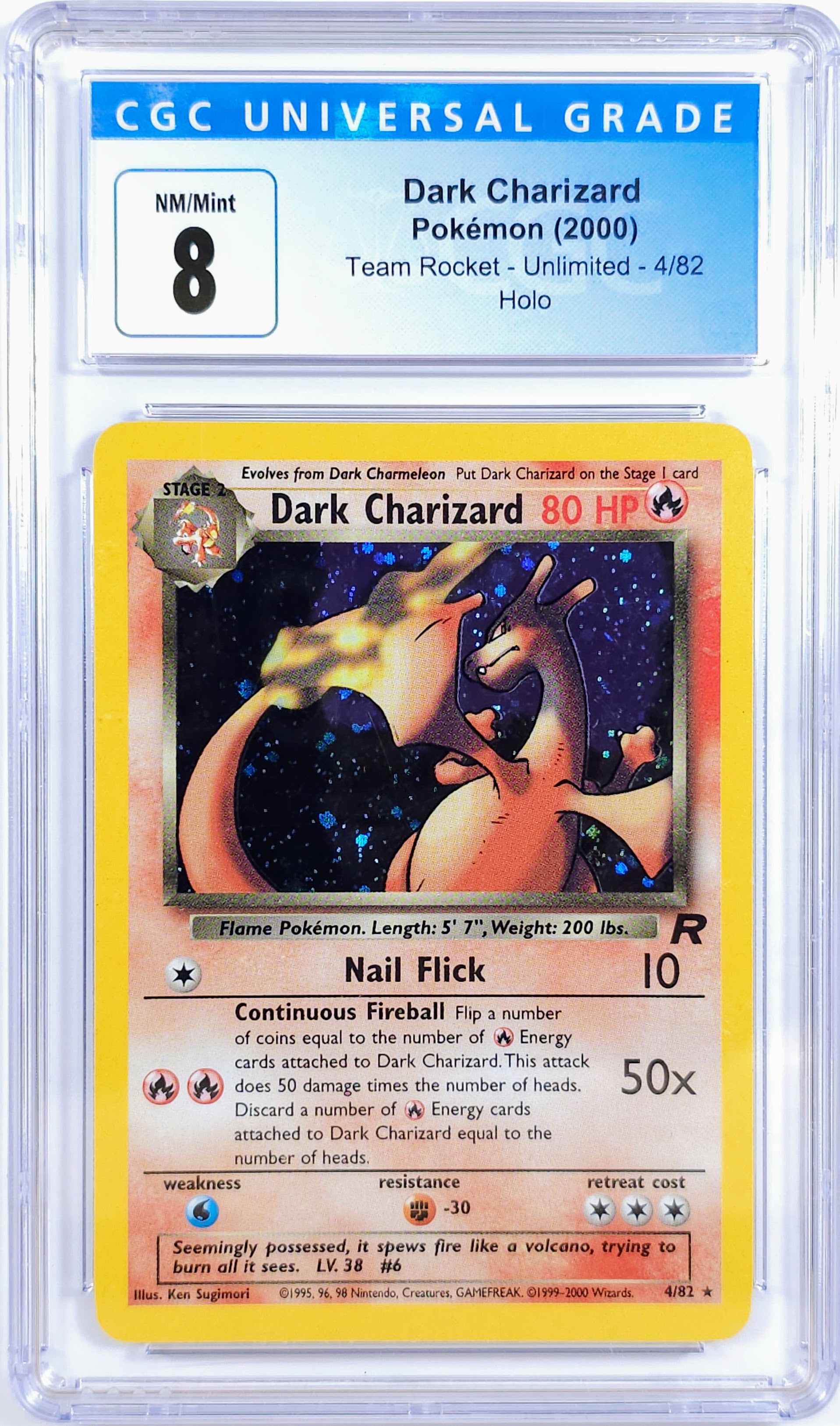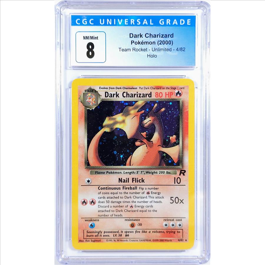 2000 Pokemon - DARK CHARIZARD #4 - HOLO RARE - Team Rocket - CGC 8