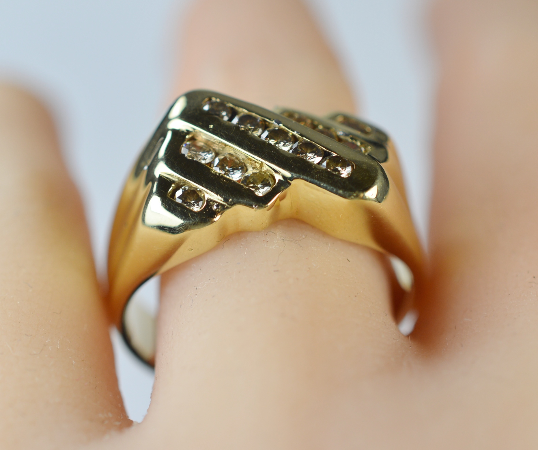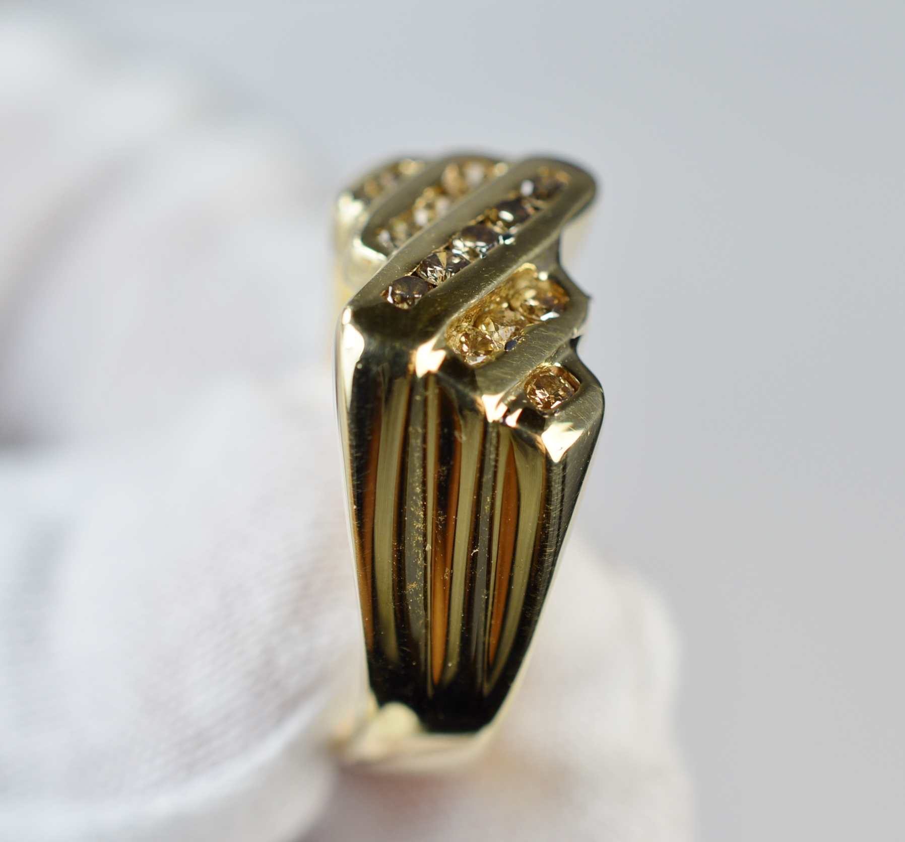 Not just your classic diamond right hand ring – this 18 karat solid yellow gold is a beautiful design that uniquely blends perfectly cut diamonds for big sparkle. Perfect to wear alone on any finger, or even stacked among your other ring favorites. The gold weight itself already gives value to your money!