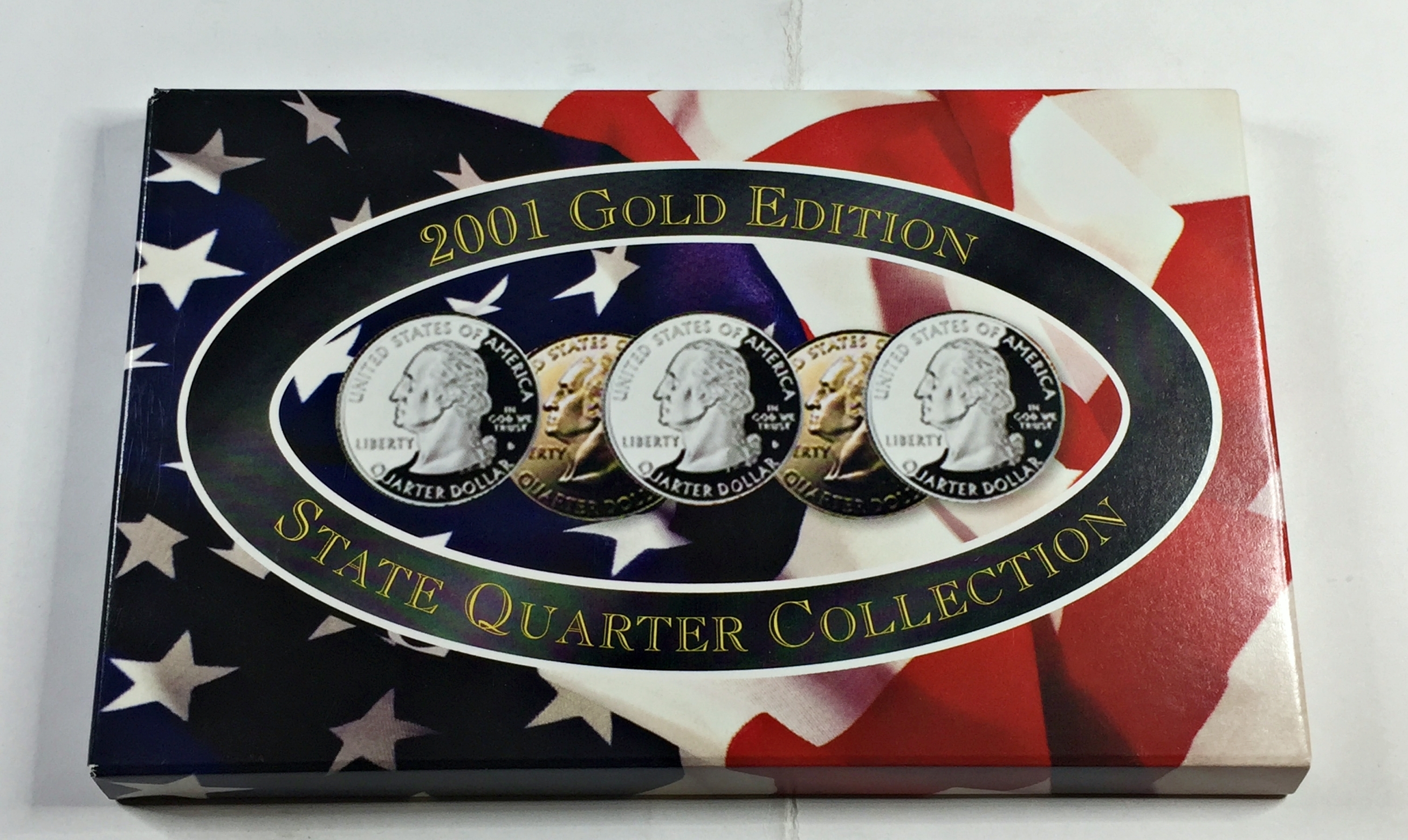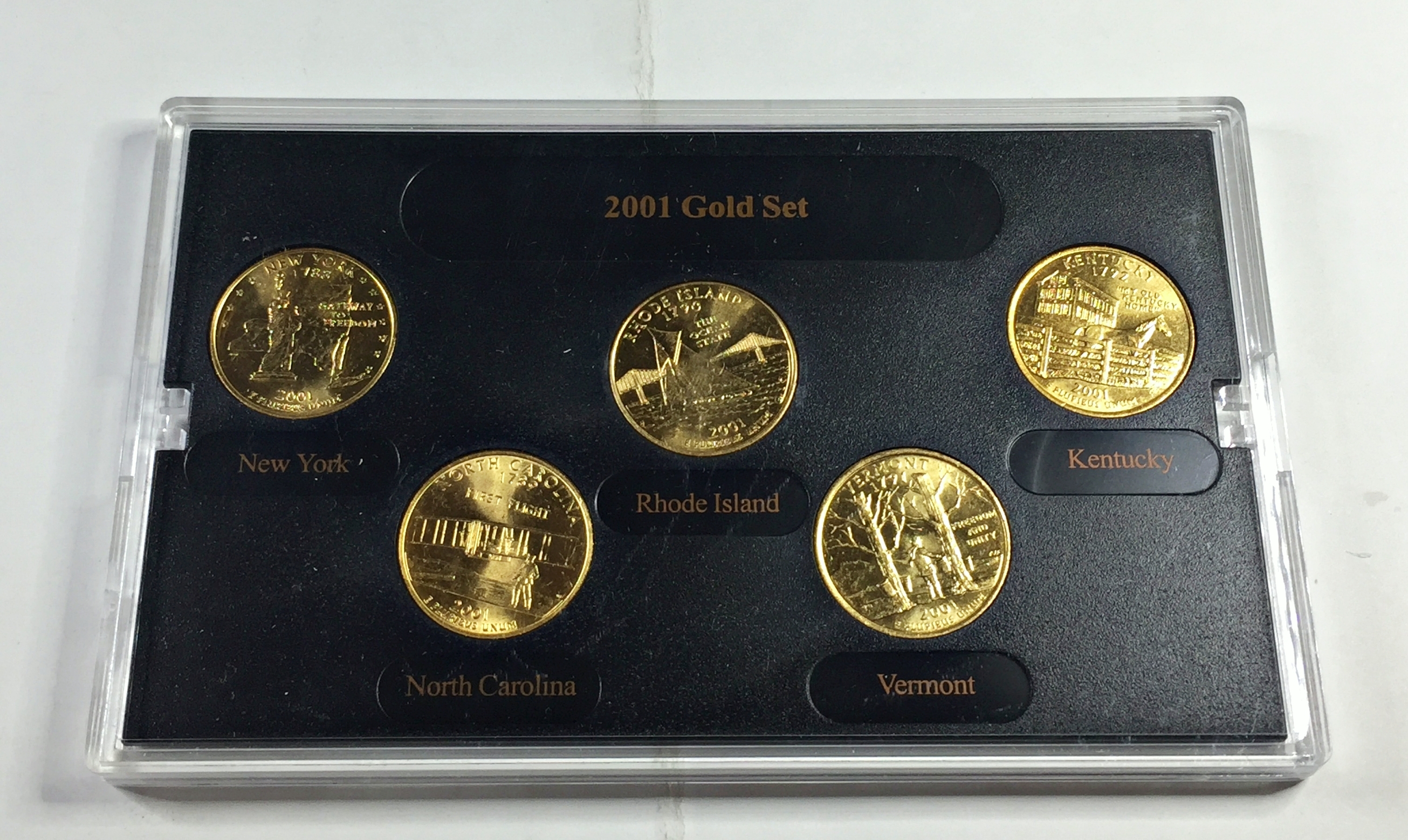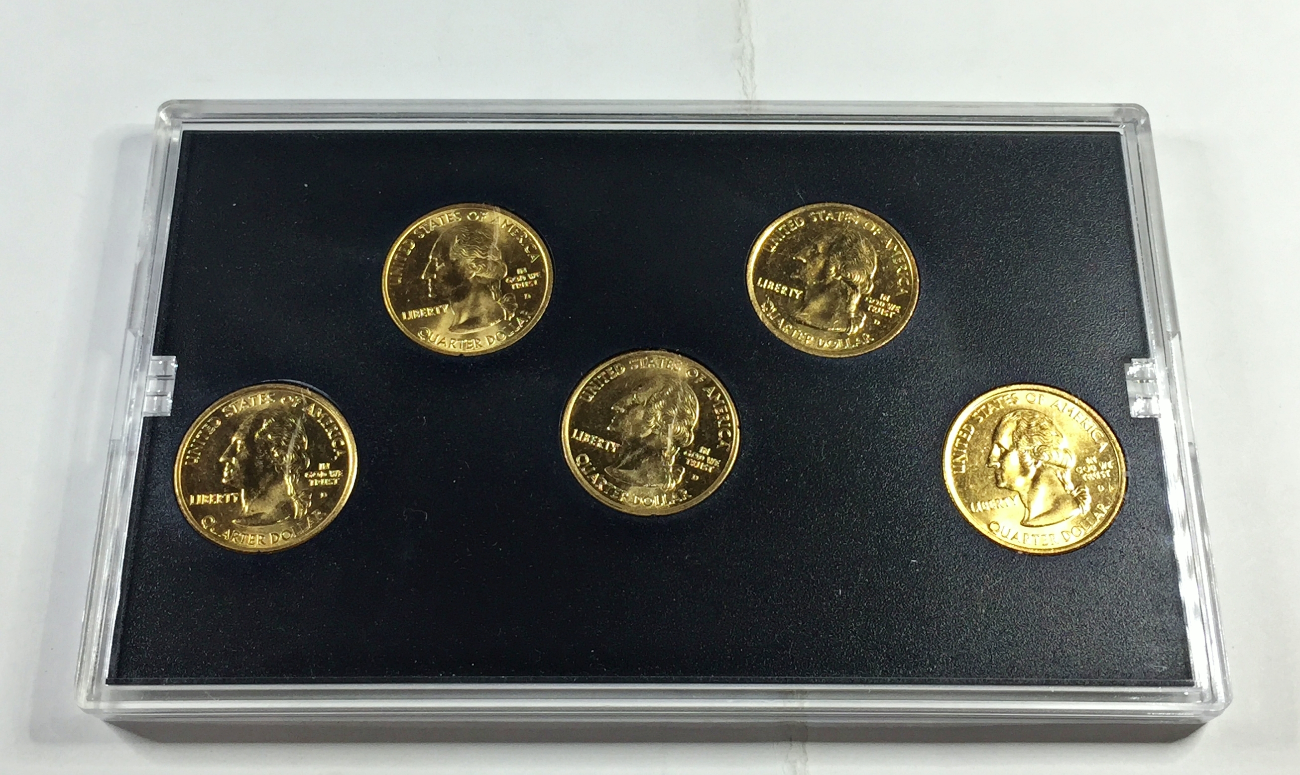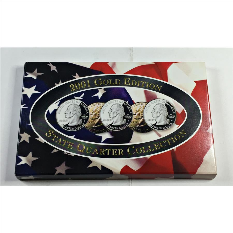 2001 24K Gold Layered Edition State Quarter Collection*Set of Five Quarters in Custom Holder and Box