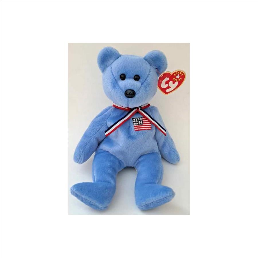 This is a 2001 Ty America The Bear Beanie Baby.  It has the original tags still attached.  The swing tag has a crease, but this one is otherwise in Excellent overall condition.