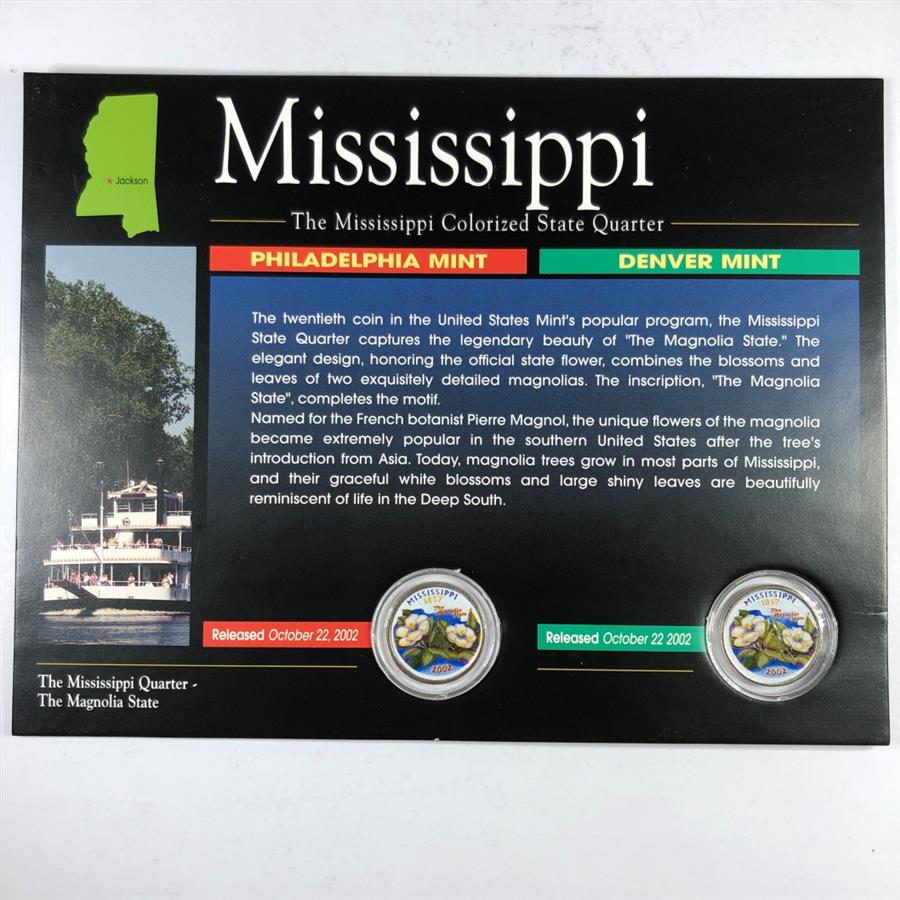 2002 Mississippi Colorized Quarter P&D Mint Mark Sets in High Grade Uncirculated Condition