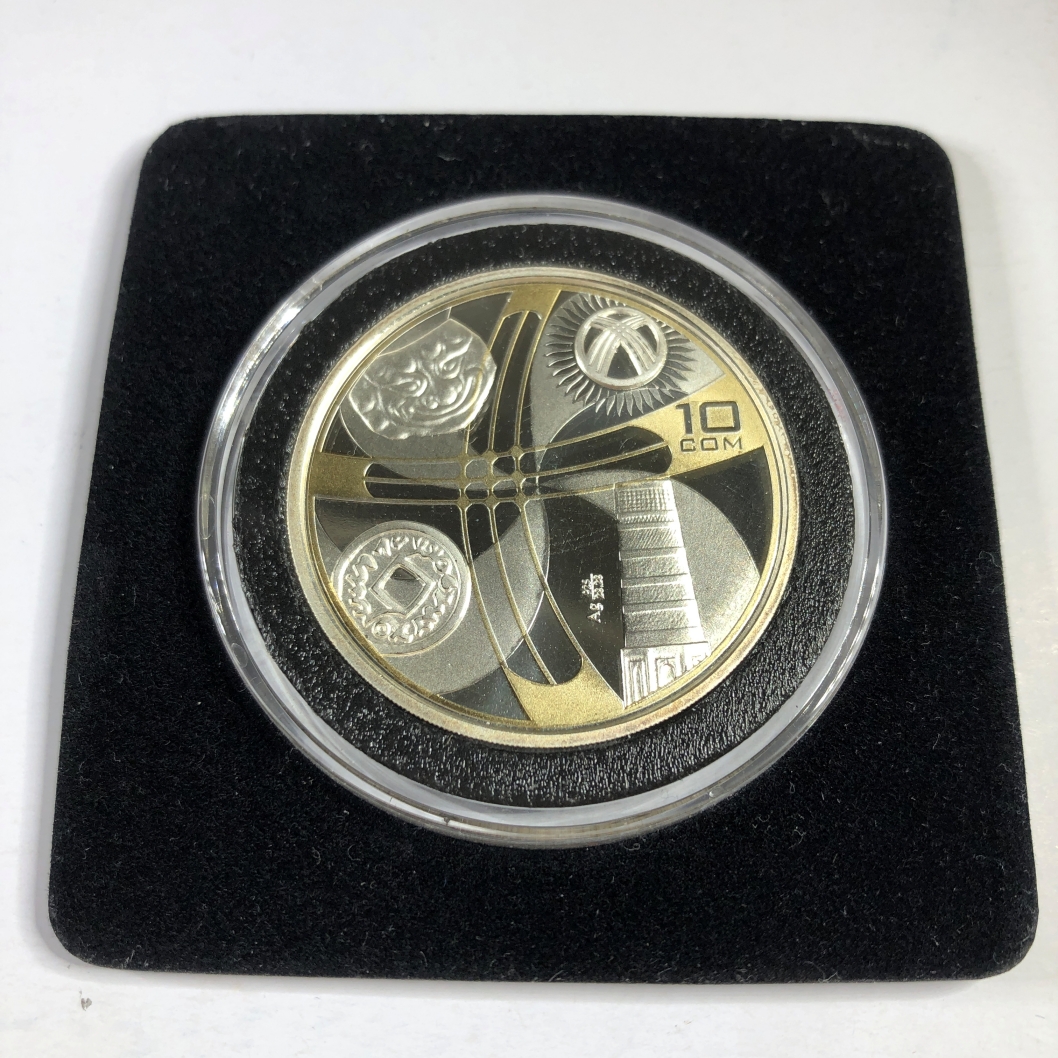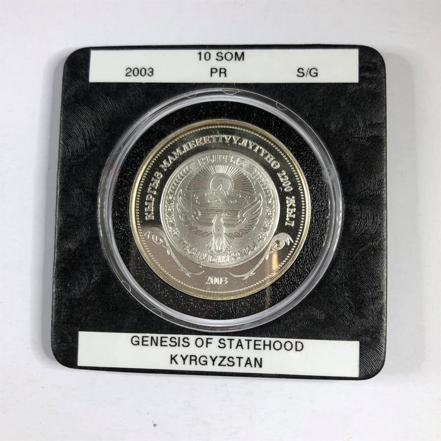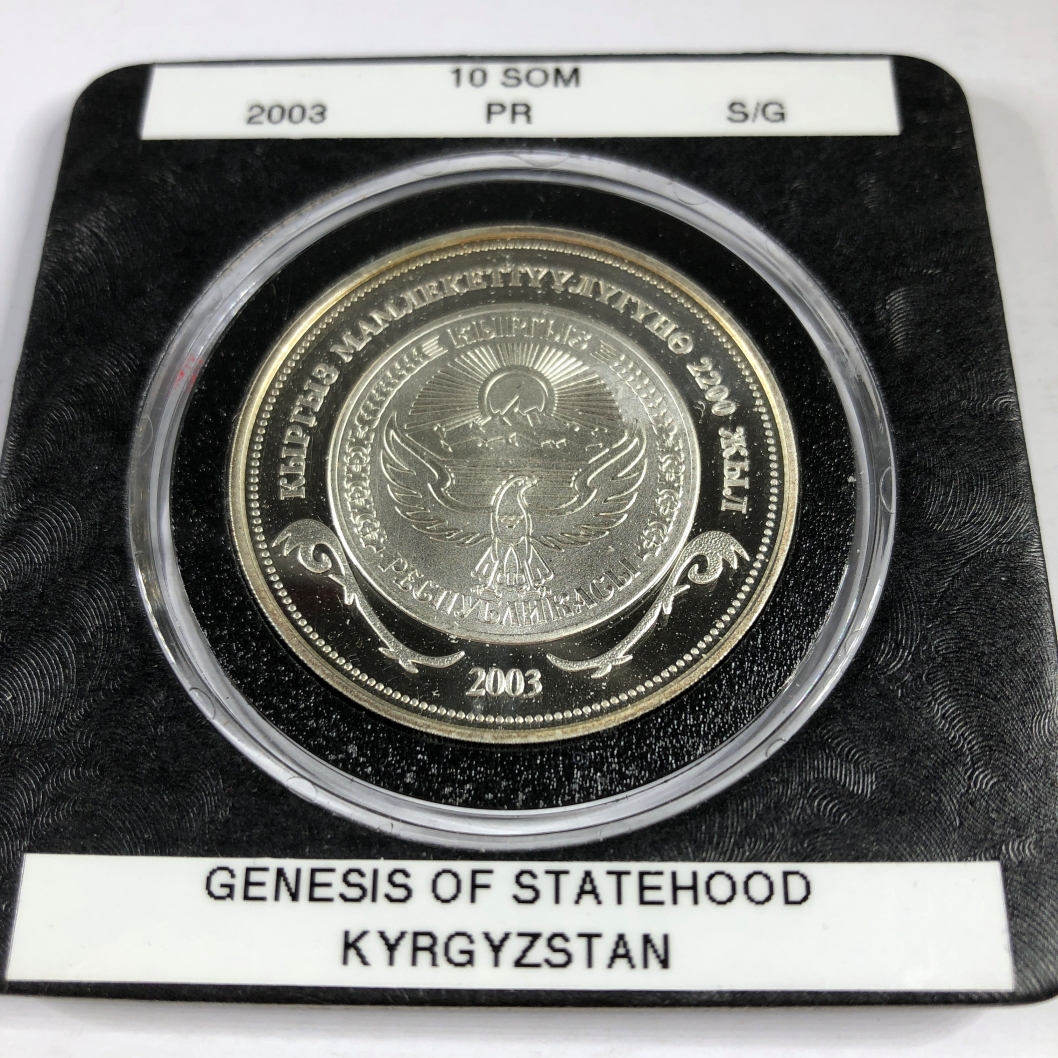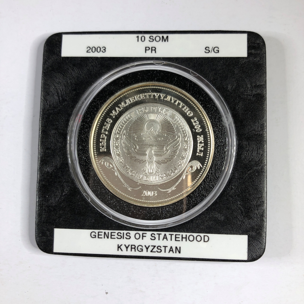 2003 Kyrgyzstan Proof Genesis of Statehood 10 Som Coin*.925 Fine Silver; Highlighted in 24K Gold*DCAM*In Protective Capsule