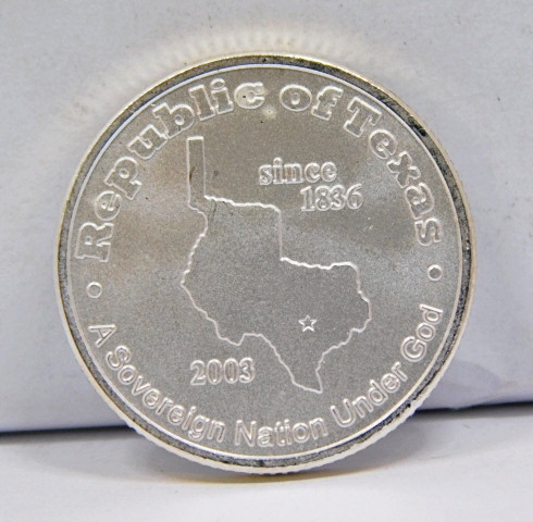 2003 Republic of Texas - A Sovereign Nation Under God - 8 Grams .999 Fine Texas Silver Commemorative Coin