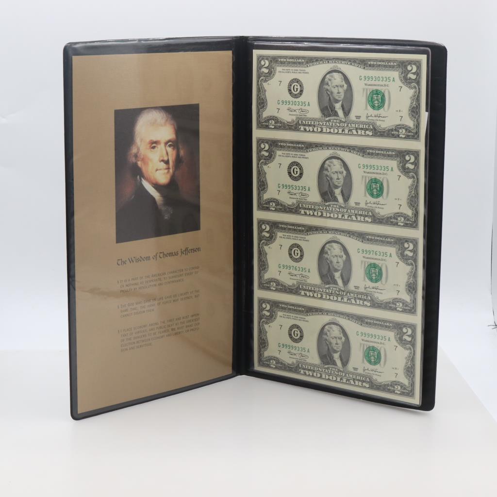 2003 US Two Dollar Federal Reserve Notes; 4 Pieces