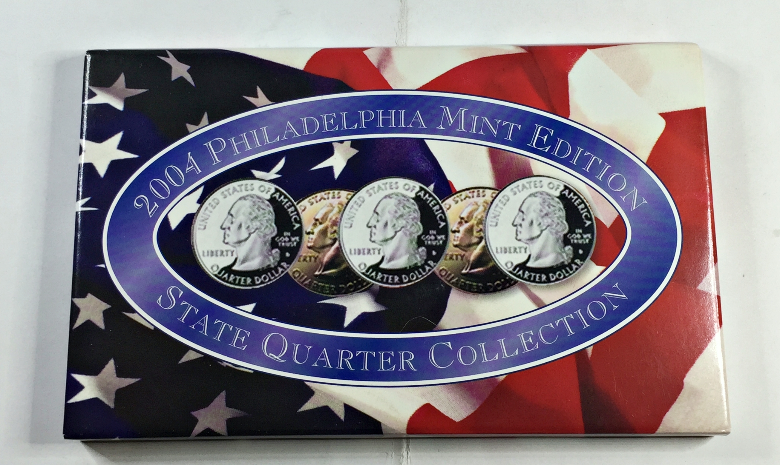 2004 Philadelphia Mint Edition State Quarter Collection*Set of Five Quarters in Custom Holder and Box