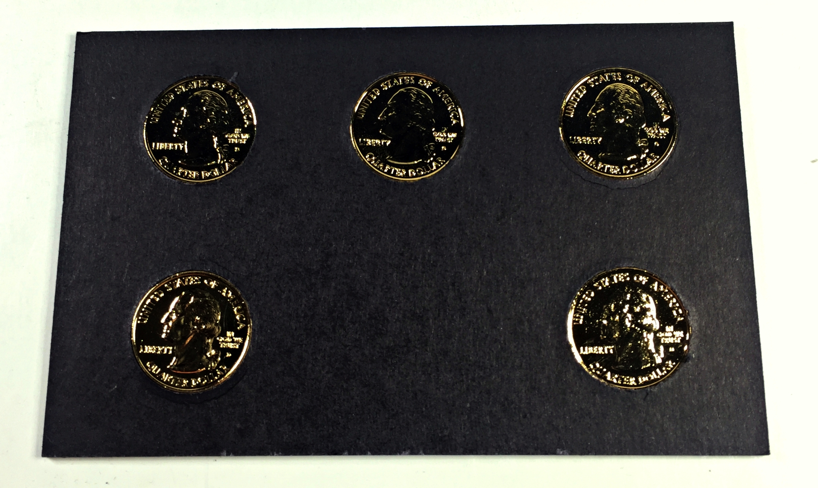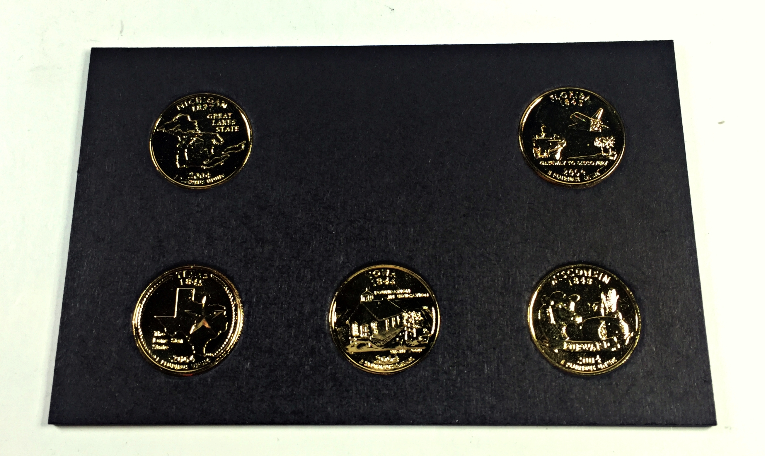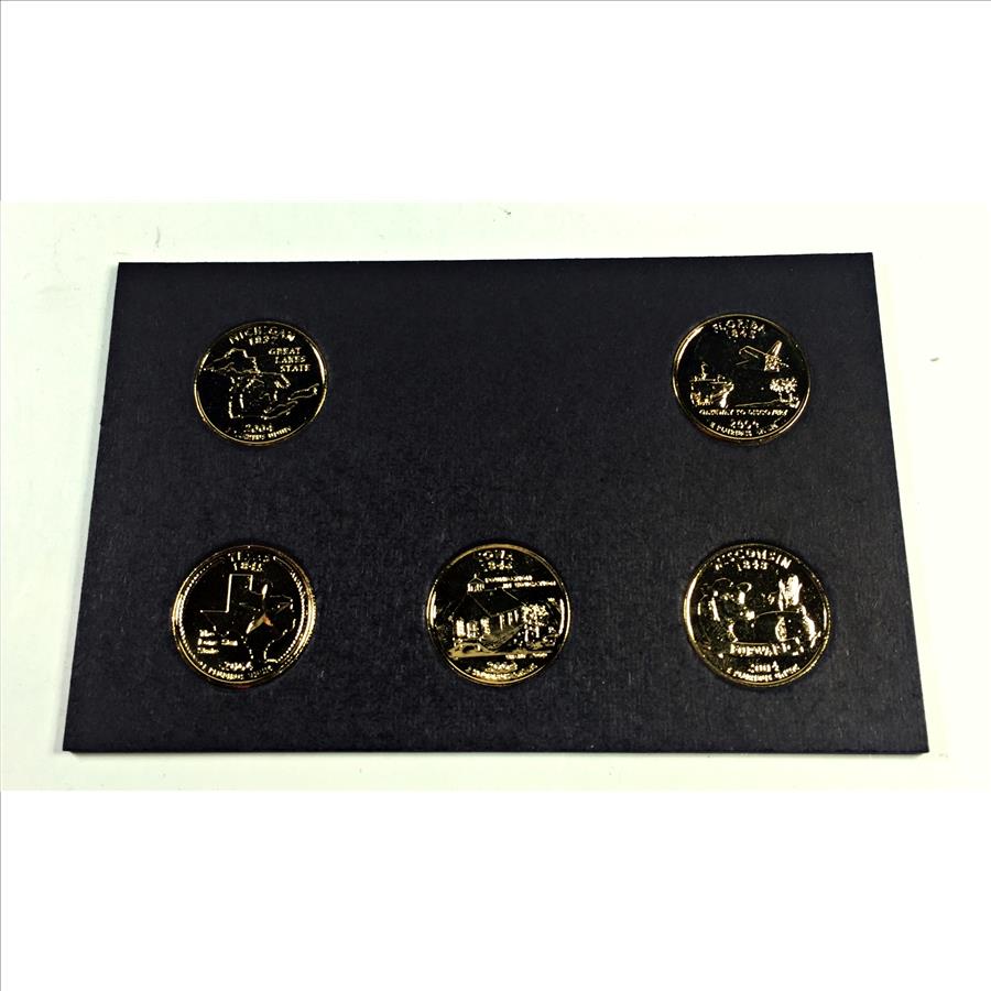 2004-D 24K Gold Layered Commemorative State Quarters*5 Quarters Encased in Heavy Cardboard