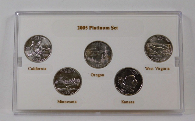 2005 Platinum Edition of the 50 States Commemorative Quarters*Five Quarters Layered in Platinum*Original Packaging