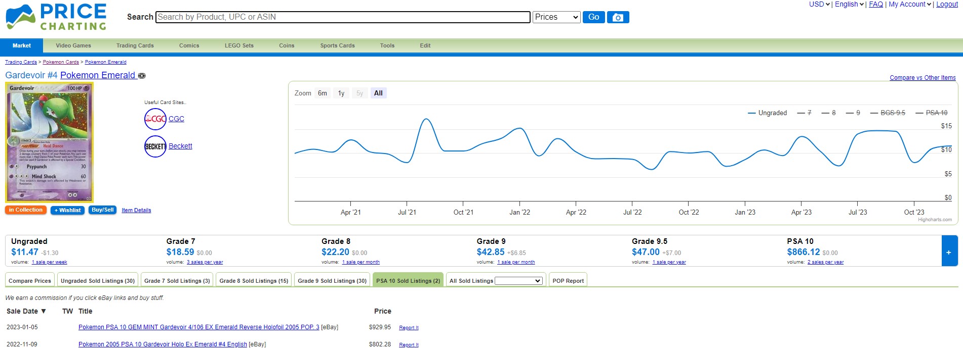 2005 Pokemon GARDEVOIR #4 - EX Emerald - CGC GEM MINT 10 - Price Guide $866.00 - Reserve is 54% lower than that price!