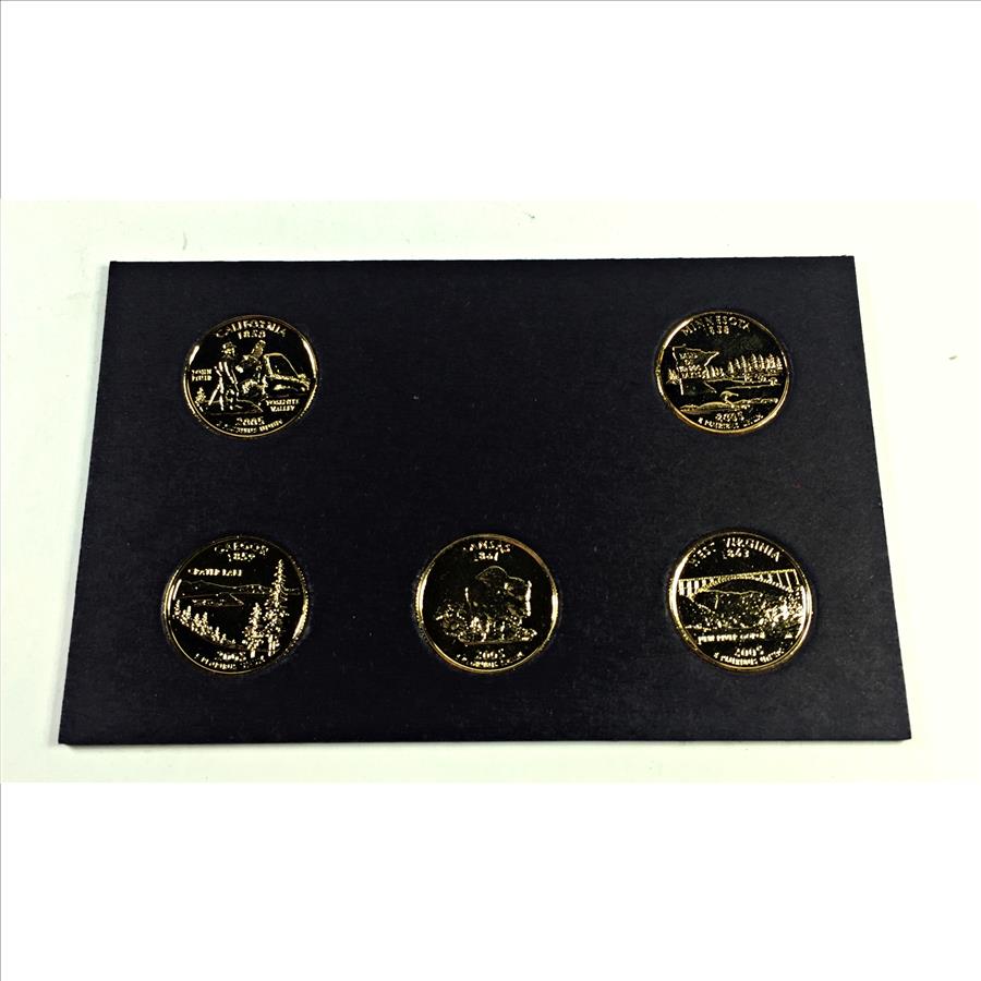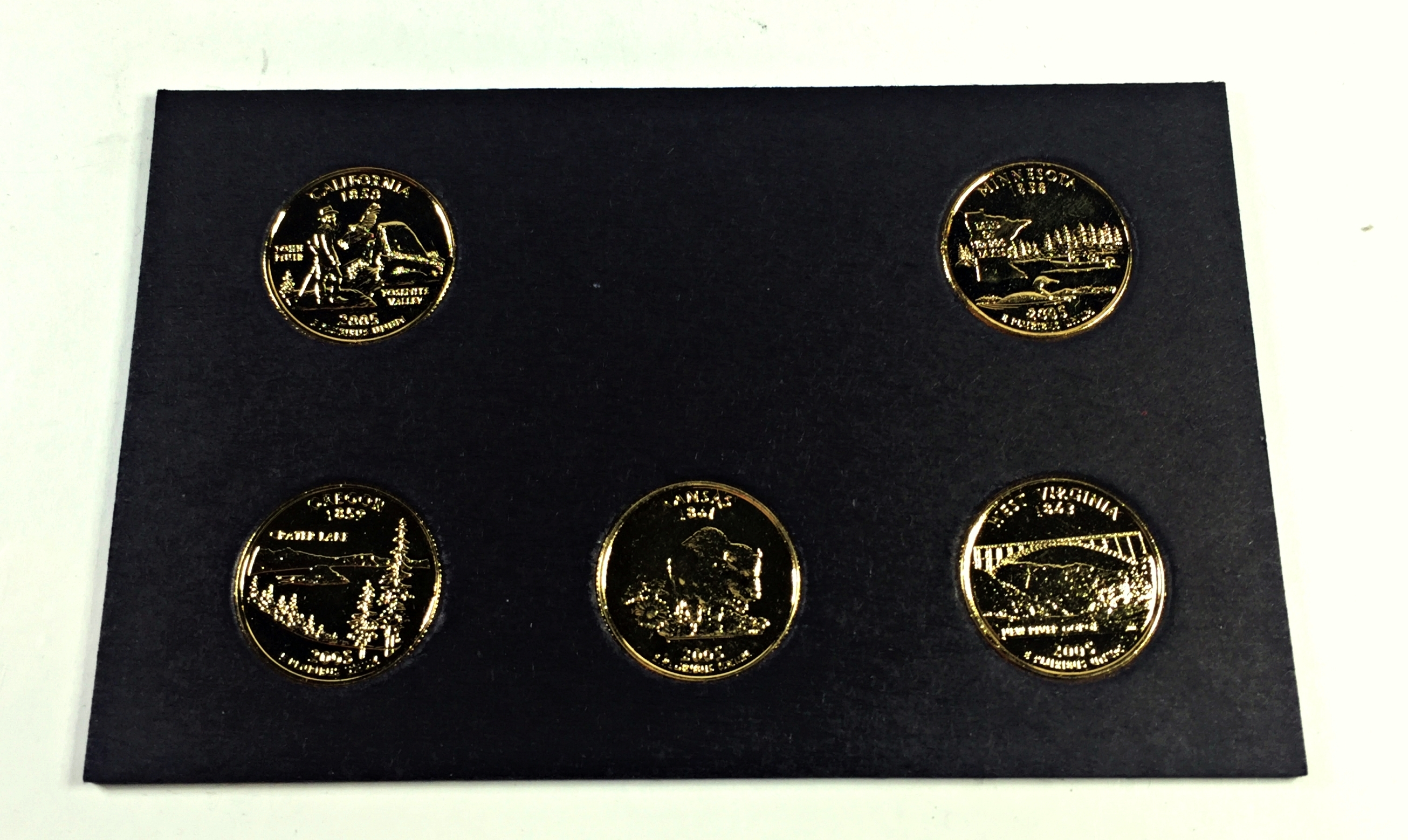 2005-D/P 24K Gold Layered Commemorative State Quarters*5 Quarters Encased in Heavy Cardboard