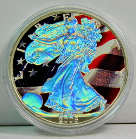 2006 Colorized American Silver Eagle with Silver Hologram - One Ounce .999 Fine Silver Dollar - In Protective Capsule