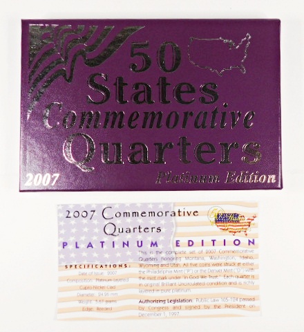 2007 Platinum Edition of the Commemorative States Quarters*Pure Platinum Layered*In Original Box with COA