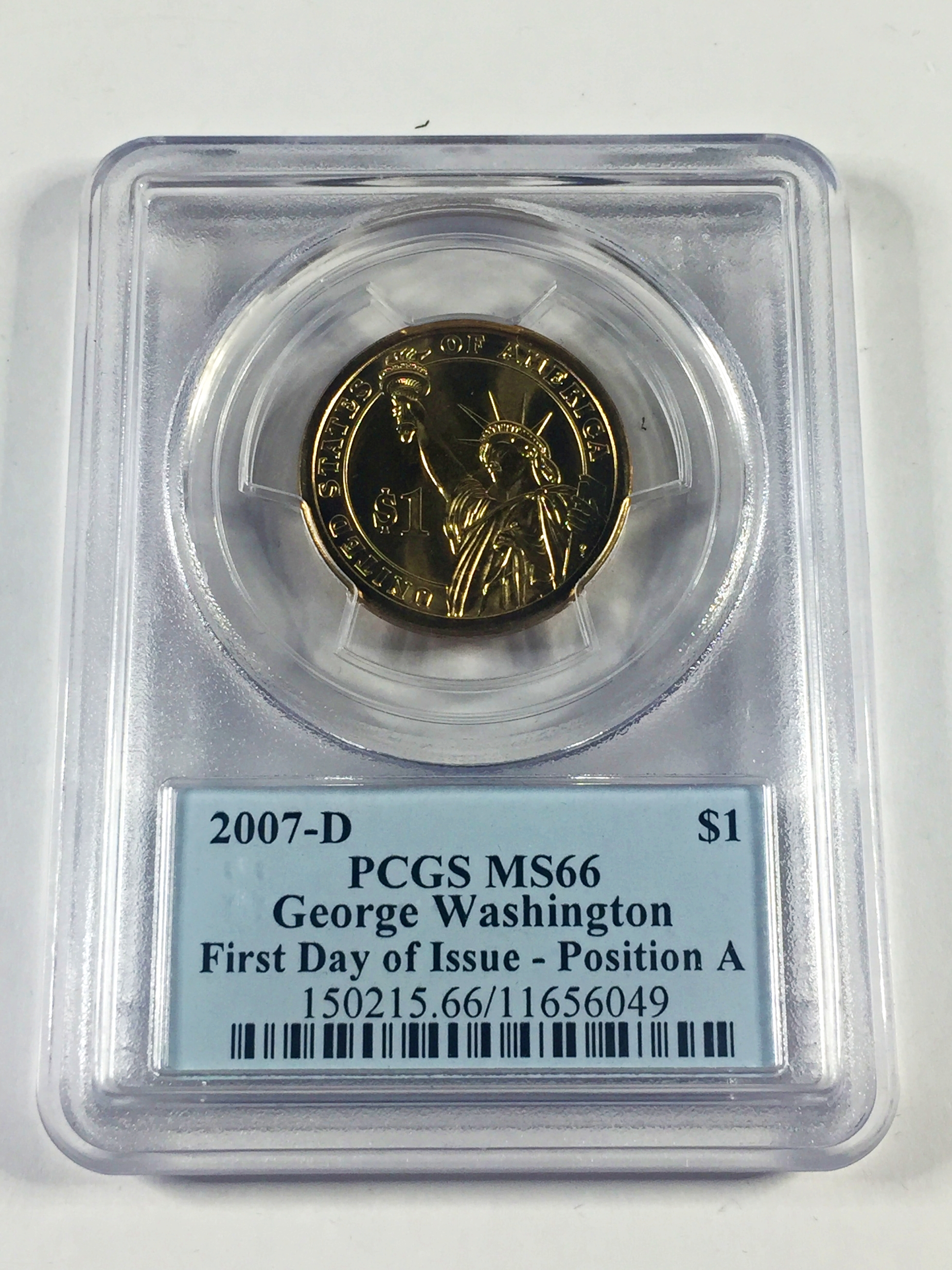 2007-D George Washington (position A) Commemorative Presidential Dollar*First Day of Issue*Graded MS66 by PCGS