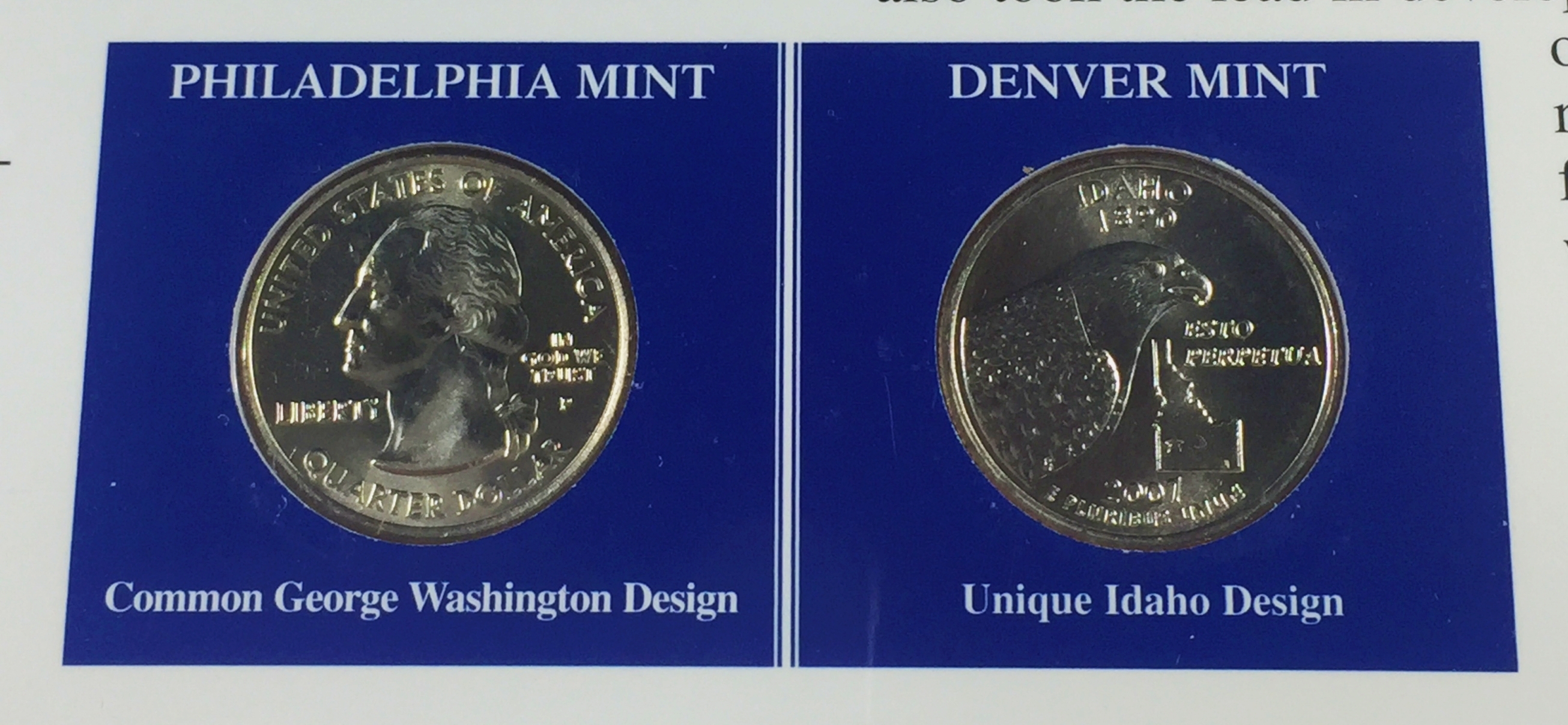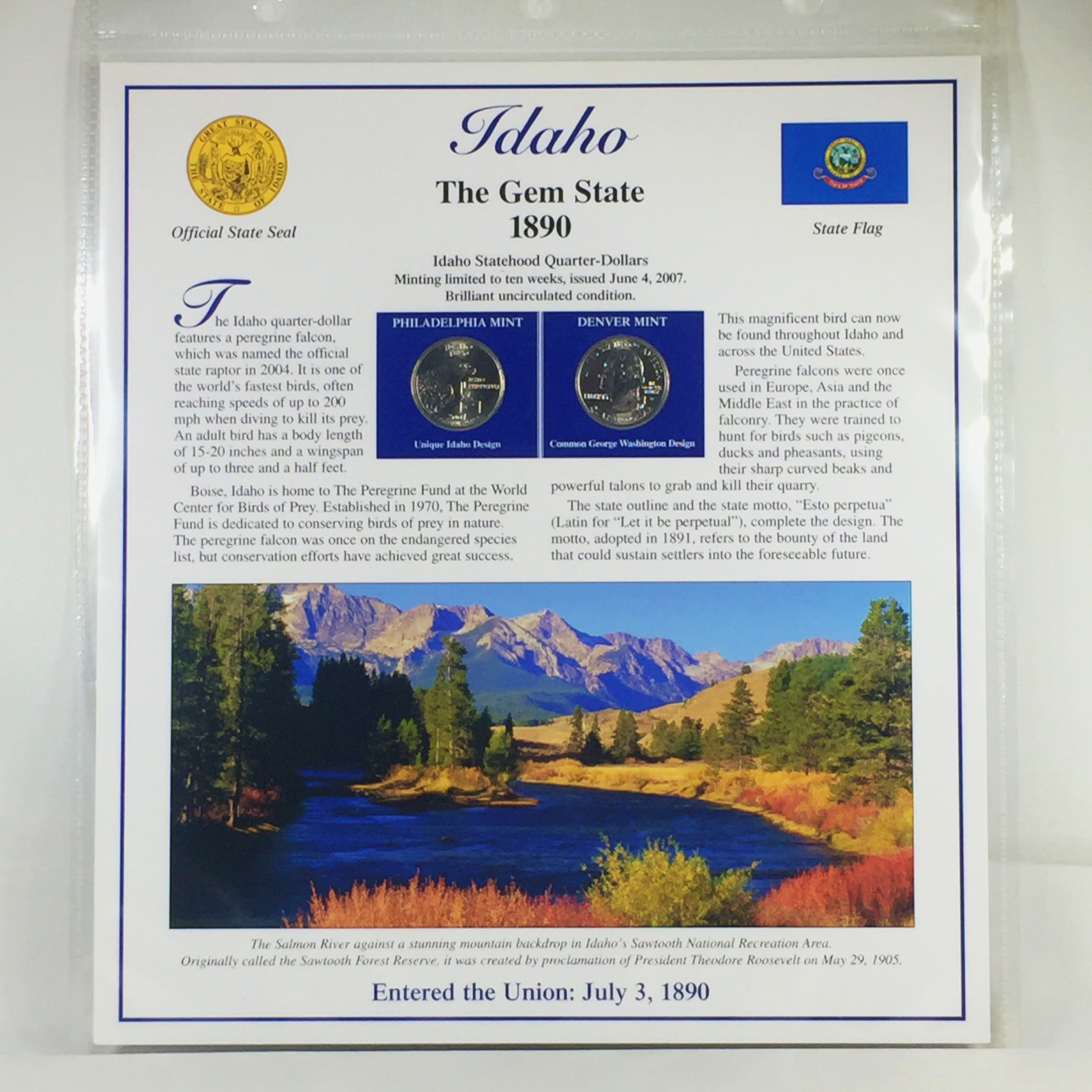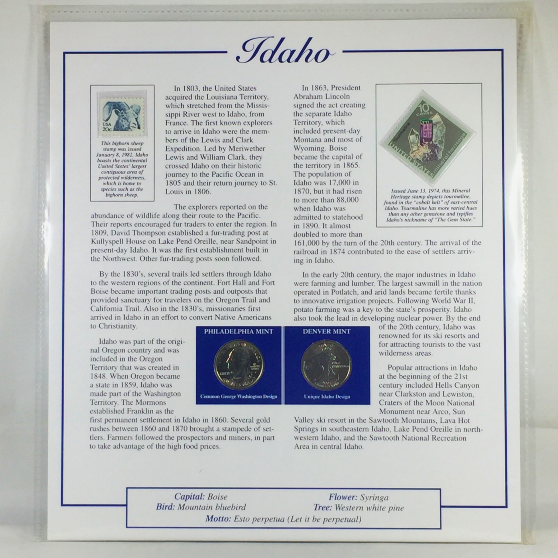 2007-P & D Idaho Commemorative Quarters*Uncirculated Encased in 9" x 10" Story Board with Stamps & Info