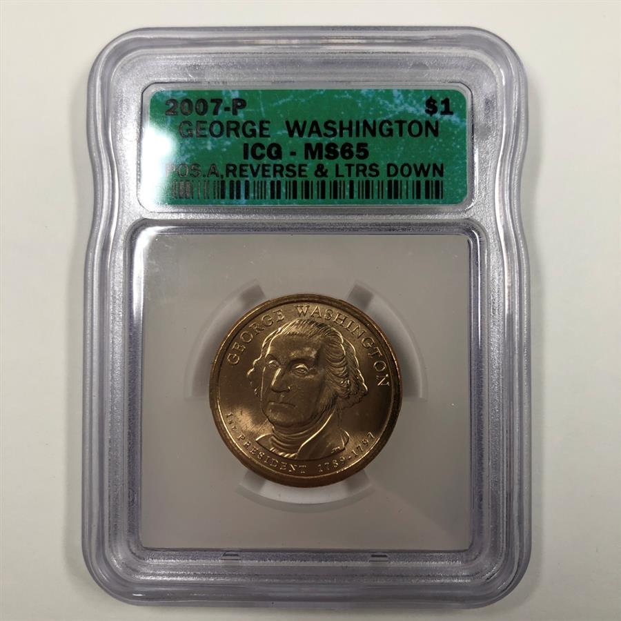 2007-P George Washington Presidential Commemorative Dollar*Position A*Graded MS65 by ICG