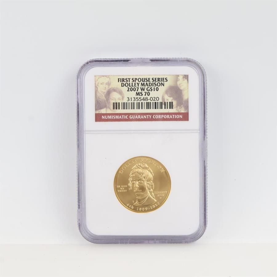 2007-W MS70 First Spouse Dolley Madison Fine Gold $10 1/2oz NGC Graded