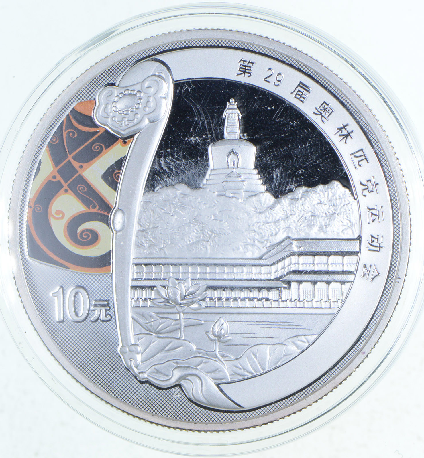 2008 Beijing Olympic Games Silver Coin China 10 Yuan - Rare Enamel