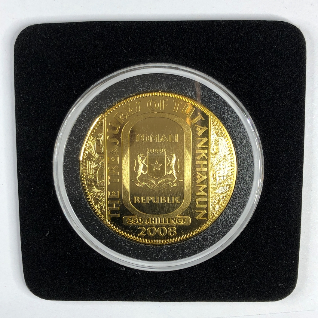 2008 Somalia 250 Schillings Gold Layered King Tut Statue if Horus in Protective Holder