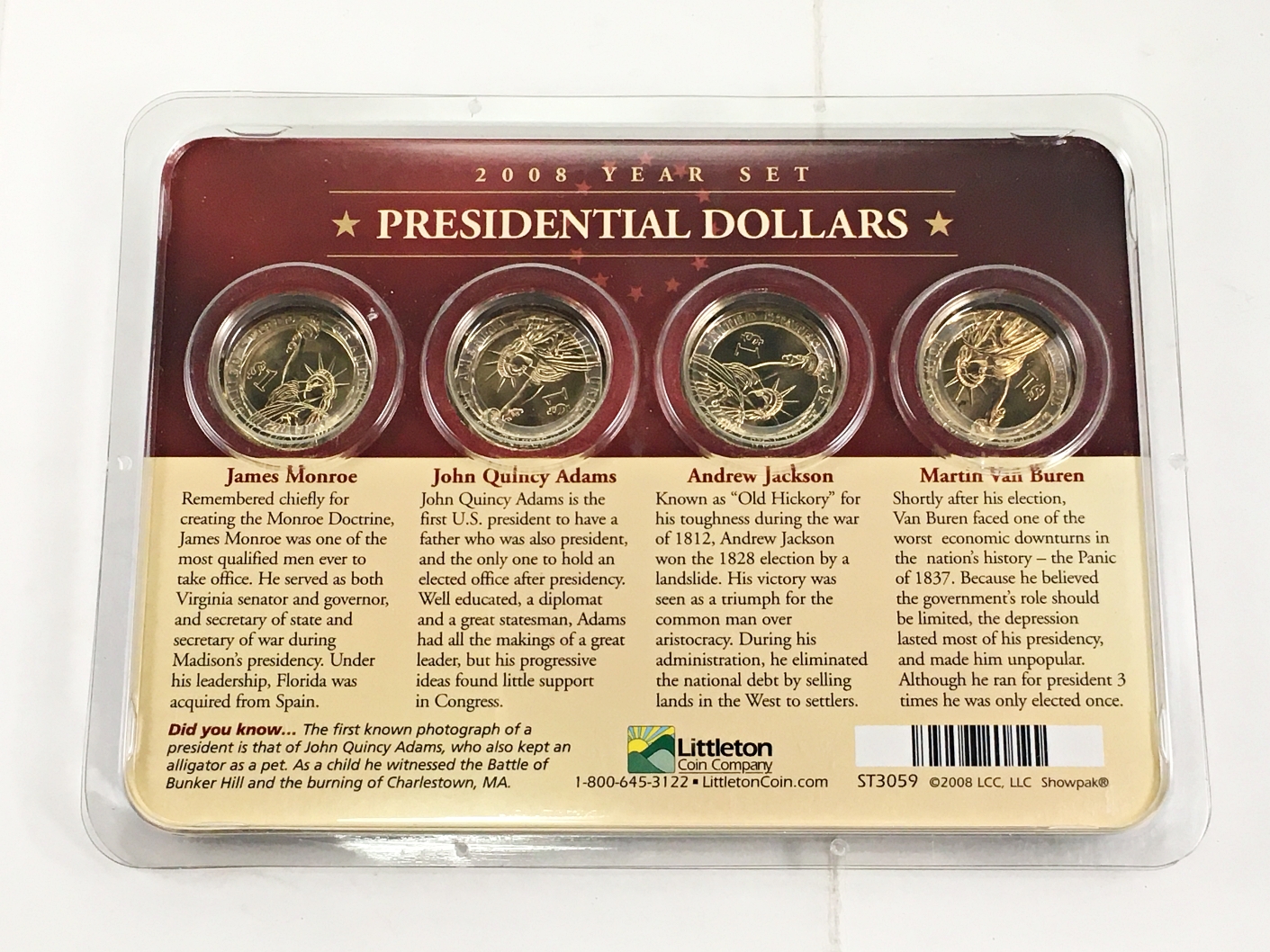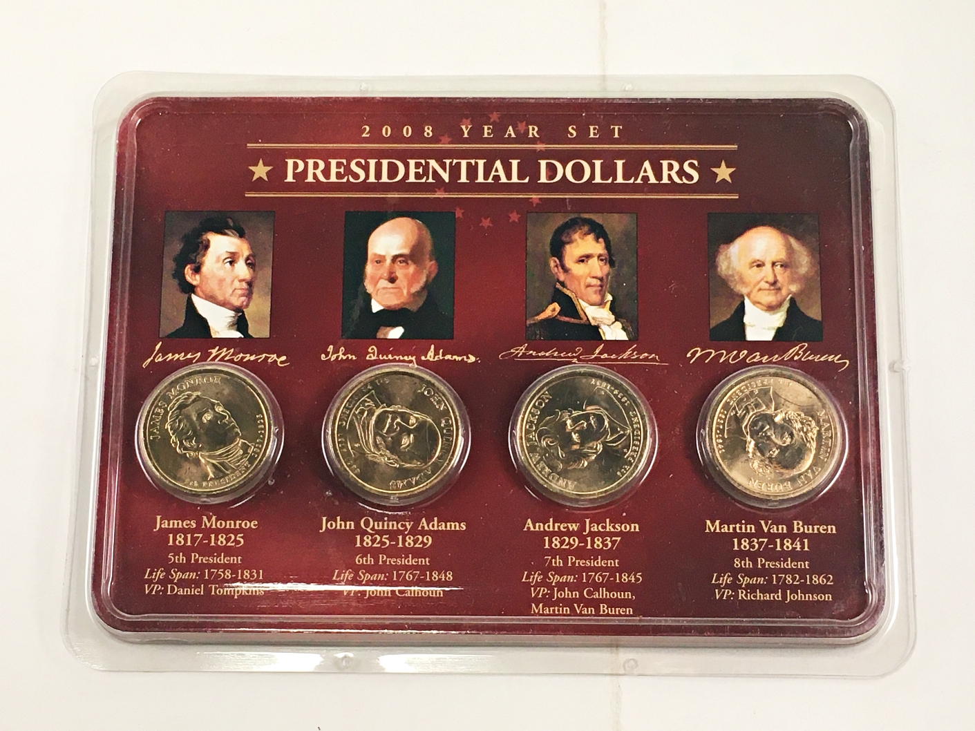 2008 Year Set Presidential Dollar Collection: Monroe, Adams, Jackson and Van Buren*Uncirculated in Sealed Packet
