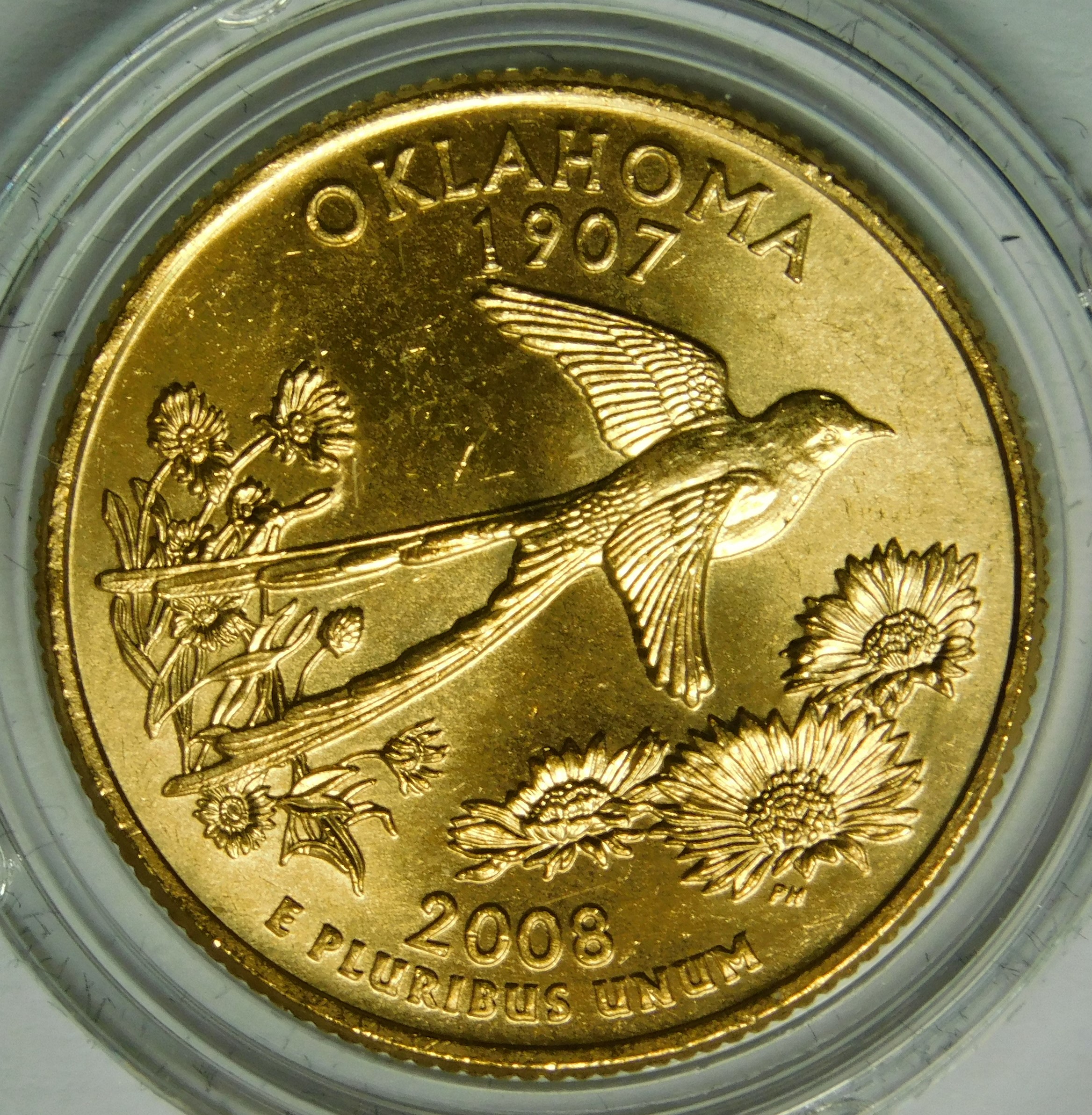 2008-P 24K Gold-Layered Oklahoma Commemorative State Quarter - In Plastic Capsule