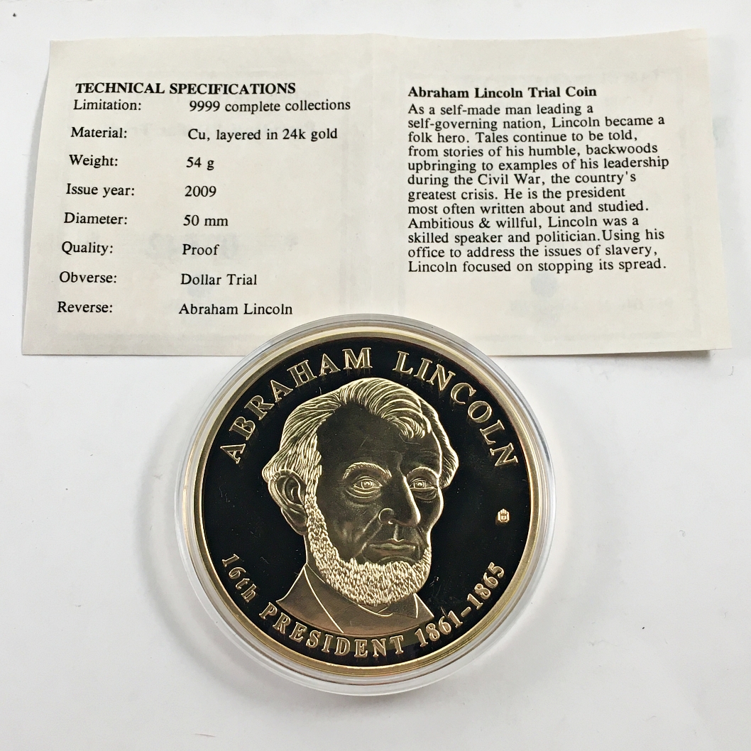2009 24K Gold Layered Abraham Lincoln Trial Coin*50mm*Proof*Protective Capsule