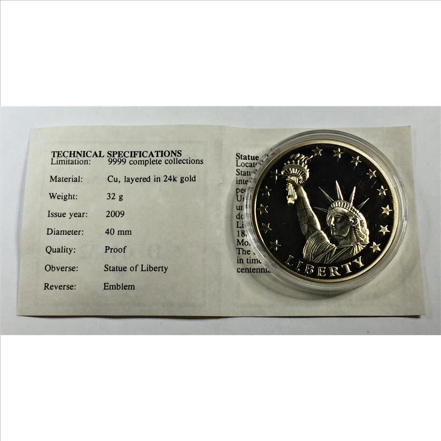 2009 24K Gold Layered Statue of Liberty Medallion/Coin*40mm Proof*In Protective Capsule with COA